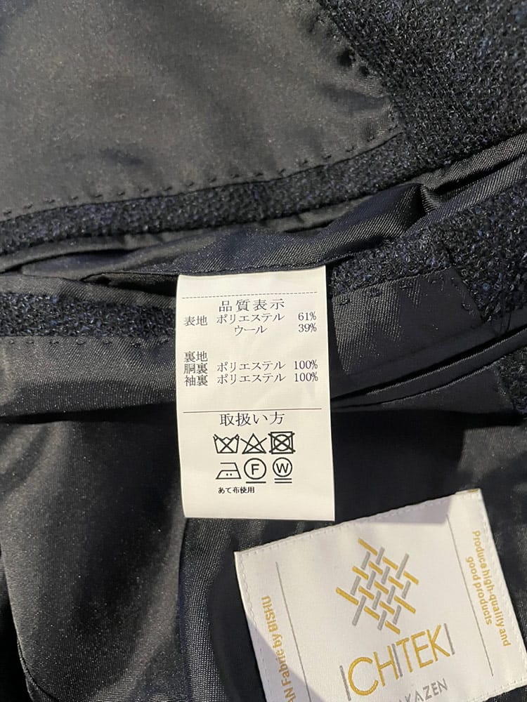 素材 :[表地]ポリエステル61% ウール39% [裏地]ポリエステル100%