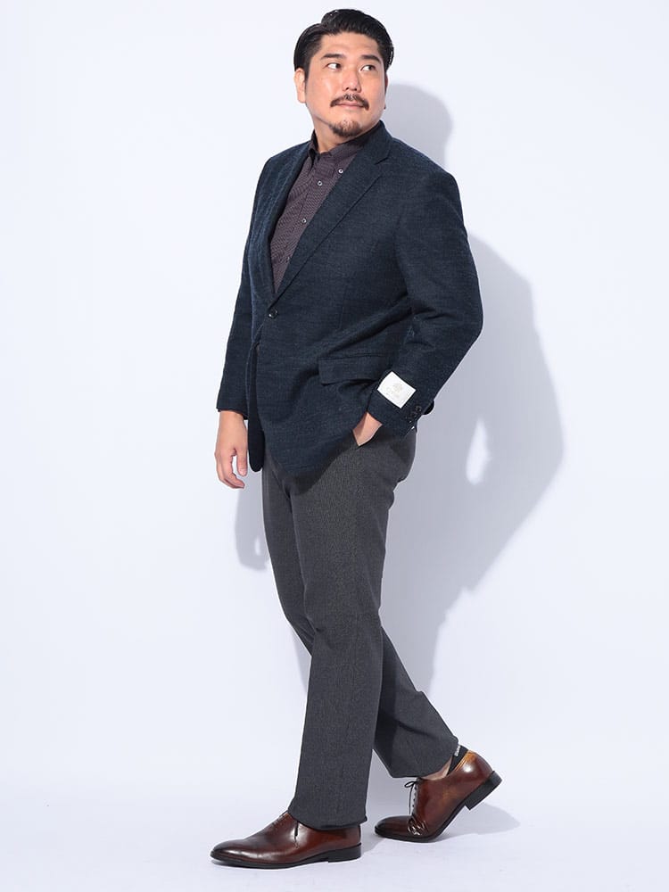 日本の繊維産地・尾州の伝統と技術が息づく「BISHU JAPAN ICHITEKI」素材を使用した、シングル2つボタンジャケット。ポリエステルとウールの混紡生地は、ウールのしなやかな風合いとポリエステルの耐久性を両立し、シワになりにくく美しいシルエットをキープします。ビジネスシーンからカジュアルな装いまで幅広く対応する、汎用性の高いデザインが魅力。Tシャツやニットと合わせてビジカジスタイルに、シャツとネクタイでフォーマルな雰囲気に。内側ポケットを3つ備え、機能性も申し分ありません。サイドベンツ仕様で動きやすく、長時間の着用でも快適な着心地が続きます。大きいサイズも豊富に揃っており、どんな体型の方にもフィット。洗練された大人のための頼れる一着は、あなたのスタイルを格上げし、自信を与えてくれます。