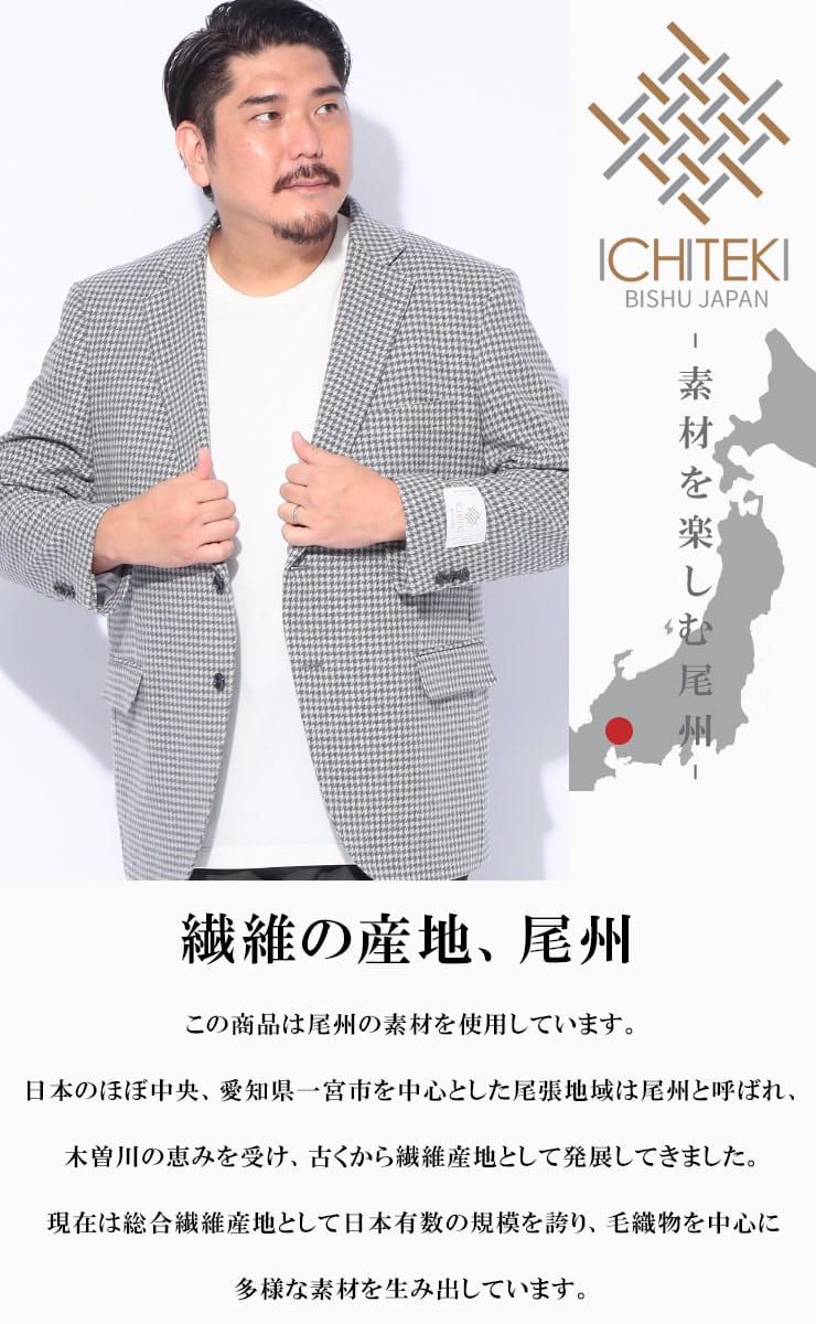 古来からの伝統を引き継ぎ、現代のシルエットの仕立て上げた[BISHU JAPAN ICHITEKI]を掲げた繊維の産地尾州の素材を使用したジャケット。ジャパンファブリックのシングル2つボタンジャケットは、上質な尾州繊維を使用したメンズビジネスアウターです。洗練されたテーラードデザインが特長で、モダンでスタイリッシュな印象を演出します。このジャケットは、忙しいビジネスマンにぴったりな機能性と快適性を兼ね備えています。尾州繊維は優れた耐久性と通気性を持ち、長時間の着用でも快適な着心地を提供します。さまざまなシーンで活躍し、ビジネスシーンからフォーマルなイベントまで幅広い場面で活用できる頼れる一着です。2つボタンのデザインは、シンプルでクラシックな印象を与え、ビジネススーツのようなフォーマルな雰囲気を演出します。同時に、カジュアルな装いにも合わせやすく、着こなしの幅を広げます。