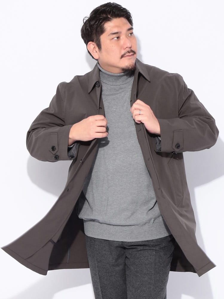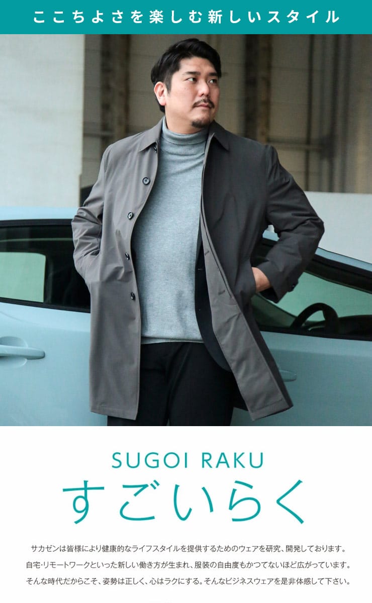 「楽」に特化したビジネスコート、HYBRIDBIZの「すごいらく」ステンカラーコート。ハリのあるポリエステル100%素材を使用し、シワになりにくくお手入れも簡単です。余分な装飾を省いたシンプルなデザインは、スーツの上から羽織るだけで、スマートなビジネススタイルが完成。膝上丈の絶妙なロング丈は、動きやすさを確保しつつ、フォーマルなシーンにも対応します。さらに、外ポケット2つ、内ポケット1つを備え、収納力も申し分なし。毎日をアクティブに過ごすビジネスマンにぴったりの、軽快で快適な一着です。
