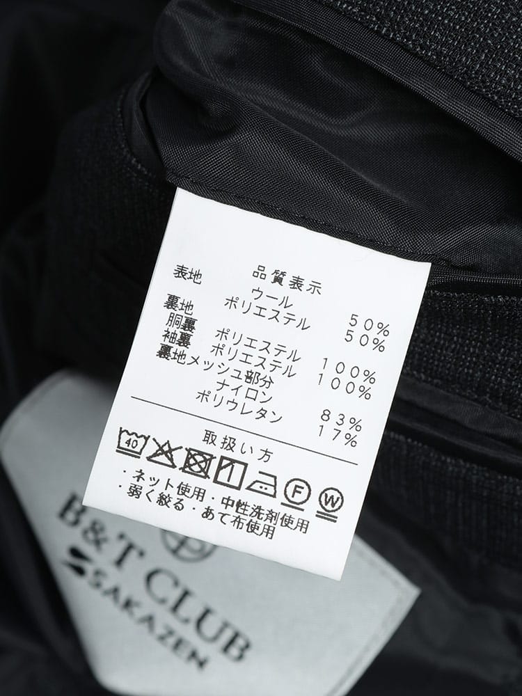 素材 :[表地]ウール50% ポリエステル50% [裏地]ポリエステル100% [裏地メッシュ]ナイロン83% ポリウレタン17%