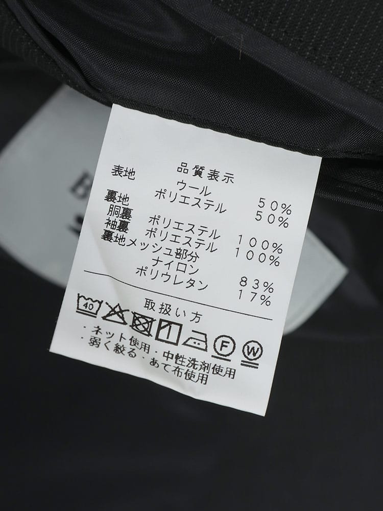 素材 :[表地]ウール50% ポリエステル50% [裏地]ポリエステル100% [裏地メッシュ]ナイロン83% ポリウレタン17%