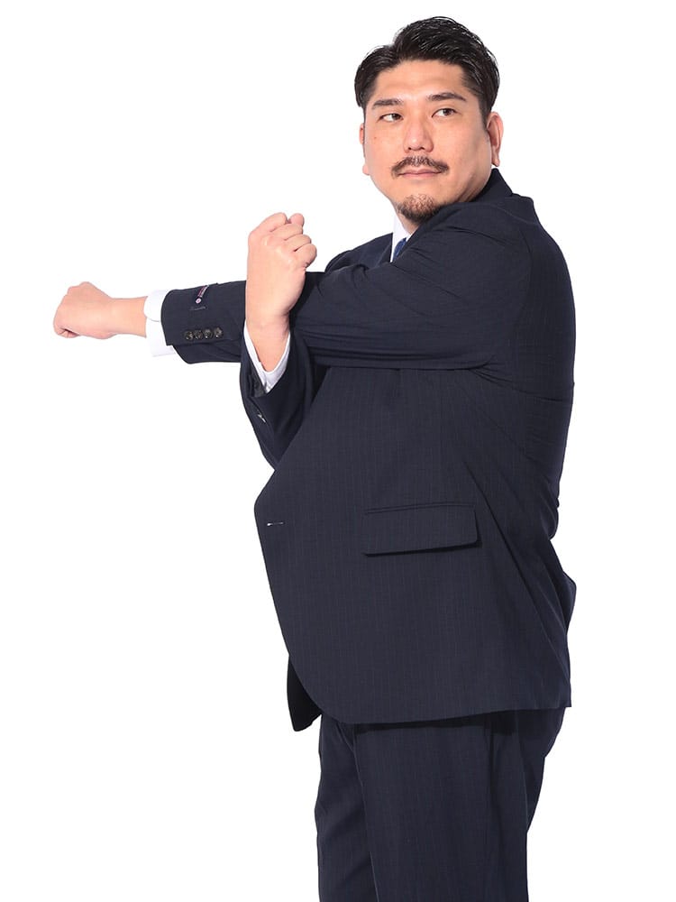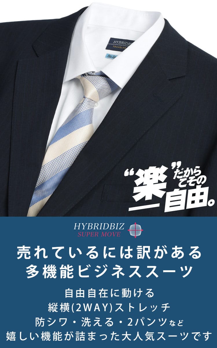 ビジネスマンから絶大な支持を得るHYBRIDBIZ(ハイブリッドビズ)より、機能性と品格を両立した大きいサイズ専用2パンツスーツが登場。最大の魅力は、縦横に伸びる2WAYストレッチと、お腹周りを楽にするウエストアジャスター。動きやすさと快適なフィット感を両立し、長時間のデスクワークや移動もストレスフリーに過ごせます。ウール混の品格漂う風合いながら、上下ウォッシャブル仕様。自宅で手軽に洗えるため、汗や汚れを気にせず毎日清潔に着用可能です。さらに、摩耗しやすいパンツが2本付いた2パンツセット&防シワ加工で、ハードな出張や外回りも安心。機能美とスマートなシルエットを兼ね備えた、働く男の勝負服です。