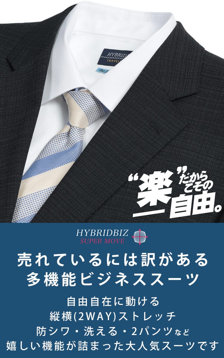 HYBRIDBIZの大きいサイズ向け2パンツスーツは、忙しいビジネスマンの強い味方です。縦横に伸びる2WAYストレッチ素材とウエストアジャスターにより、長時間の着用でも窮屈さを感じさせない最高の着心地を実現しました。スペアパンツ付きで消耗を抑えられるうえ、自宅で洗えるウォッシャブル仕様のため手入れも簡単。ビジネスからフォーマルまで幅広く着回せる、機能性と上品さを兼ね備えた、働く男性に最適な一着です。
