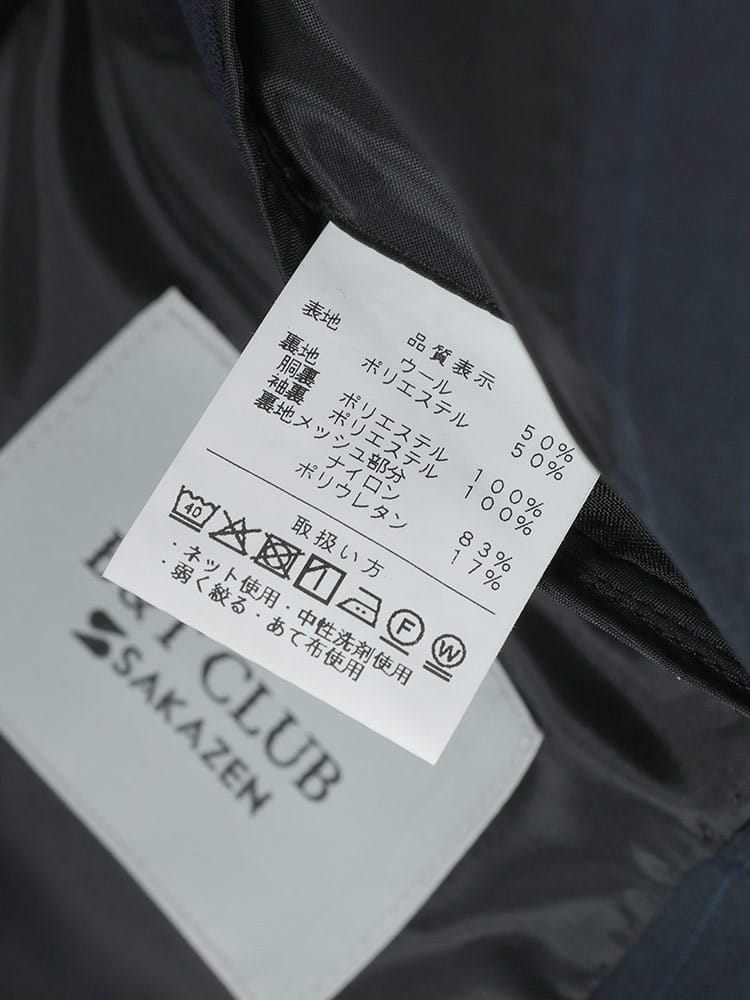 素材 :[表地]ウール50% ポリエステル50% [裏地]ポリエステル100% [裏地メッシュ]ナイロン83% ポリウレタン17%