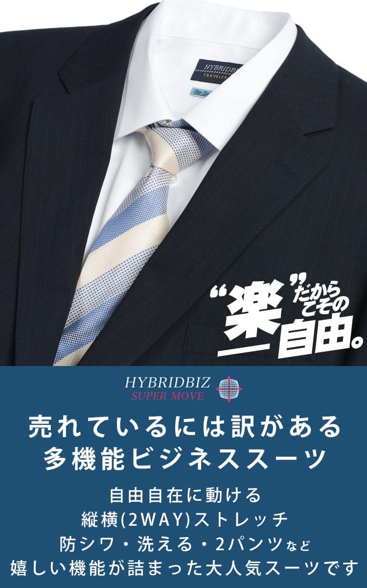 HYBRIDBIZの大きいサイズ向け2パンツスーツは、忙しいビジネスマンの強い味方です。縦横に伸びる2WAYストレッチ素材とウエストアジャスターにより、長時間の着用でも窮屈さを感じさせない最高の着心地を実現しました。スペアパンツ付きで消耗を抑えられるうえ、自宅で洗えるウォッシャブル仕様のため手入れも簡単。ビジネスからフォーマルまで幅広く着回せる、機能性と上品さを兼ね備えた、働く男性に最適な一着です。