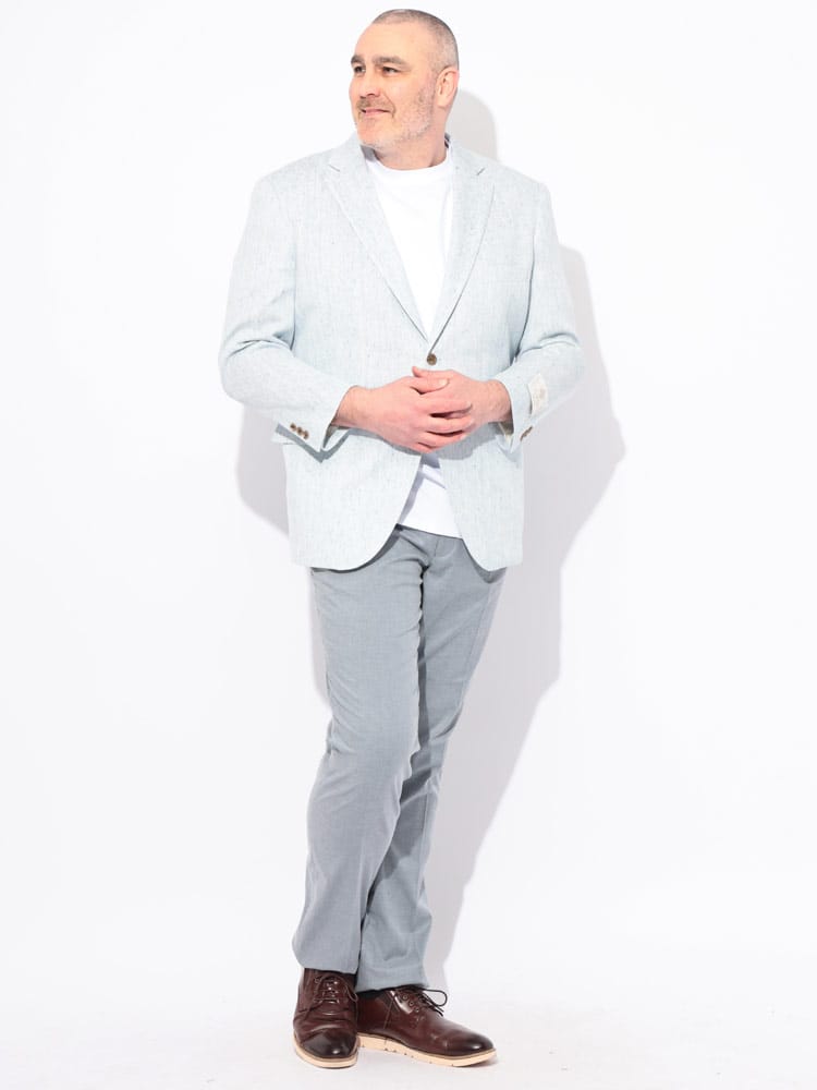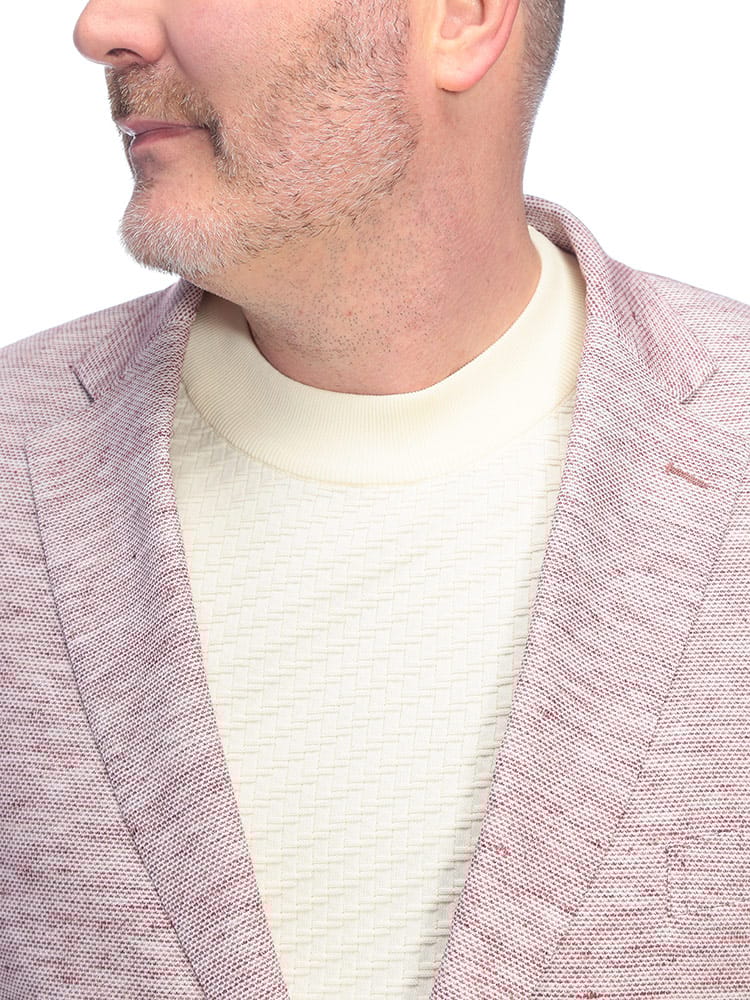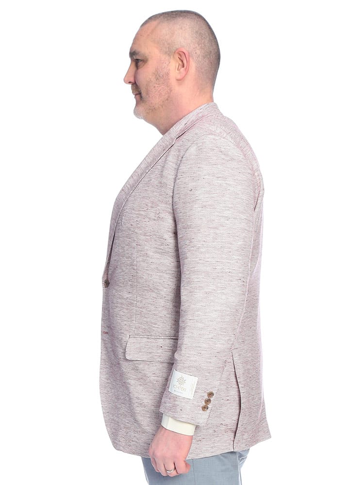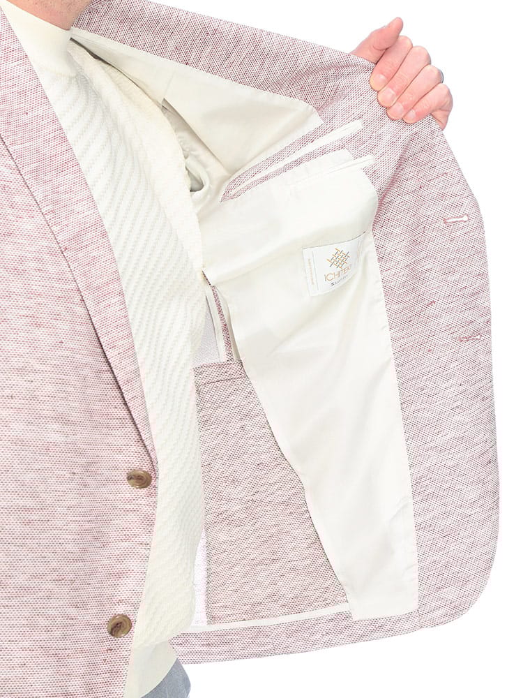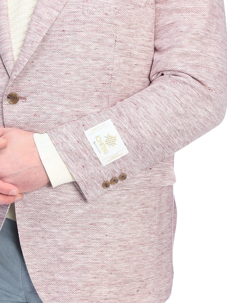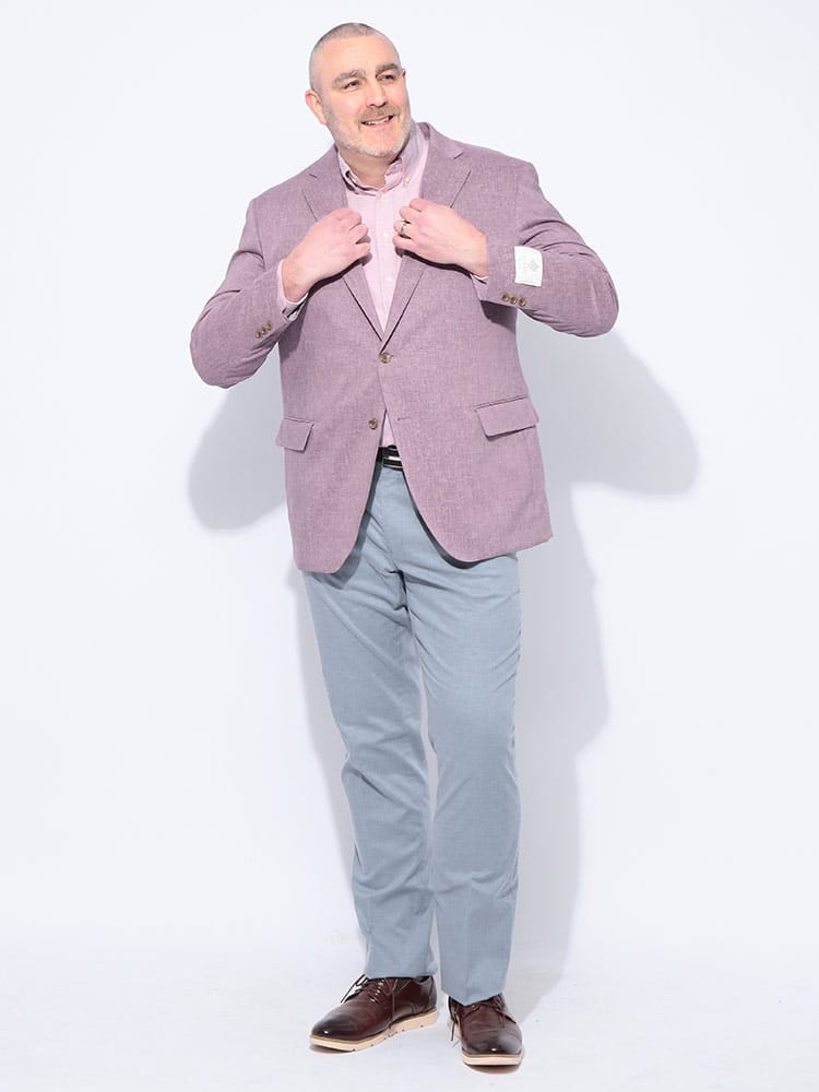 B&T CLUBのテーラードジャケットは、日本が誇るテキスタイルメーカー「イチテキ」の生地を使用した、上質な大人の一着です。麻をブレンドすることで、清涼感あふれる風合いと軽やかな着心地を実現しました。レッドは麻の素材感を活かしたナチュラルな質感、ベージュやライラックには形態回復性に優れた「SOLOTEX」を配合し、シワになりにくく美しいシルエットを保ちます。ネイビーは落ち着いた光沢があり、オンオフ問わず活躍します。大きいサイズ専門ブランドならではの絶妙な設計で、窮屈さを感じさせないスマートな装いを演出。春の装いに華を添える、きれいめカジュアルの決定版です。