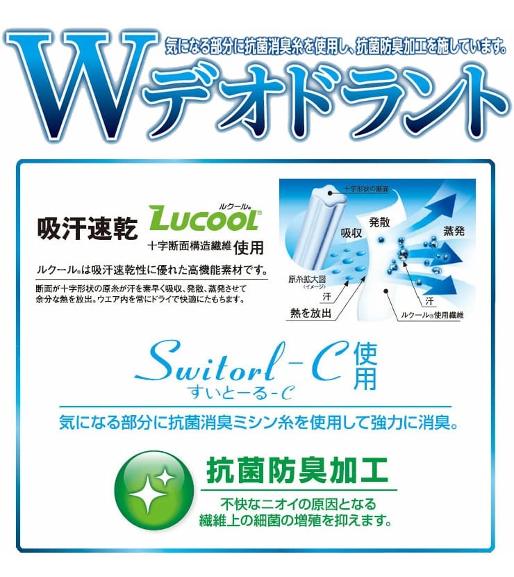 仕様 :クルーネック / 吸汗速乾 / 抗菌防臭