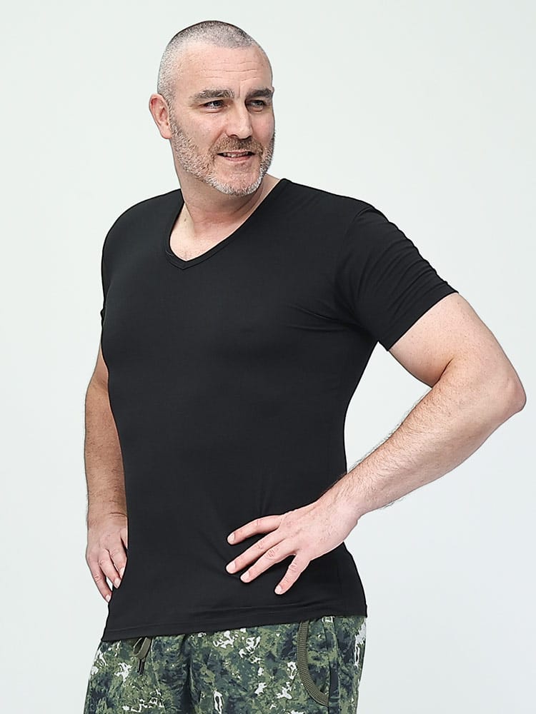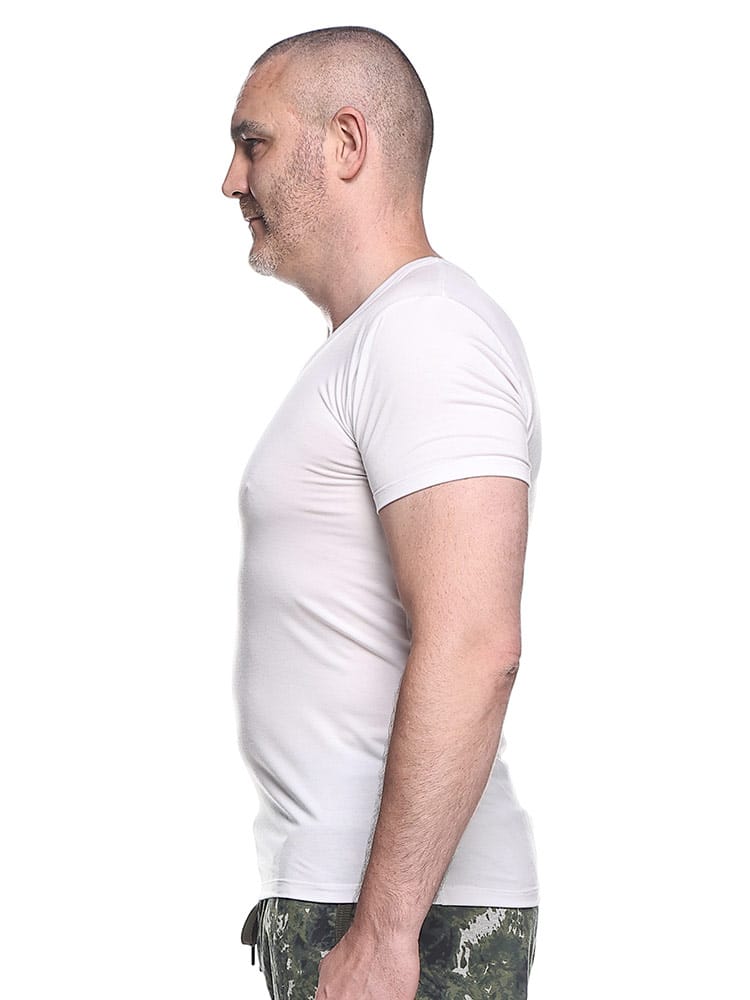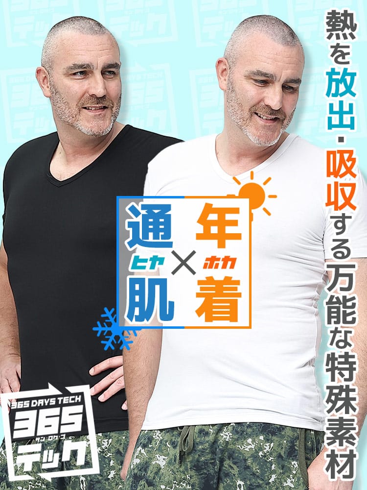 「365テック」は年中快適に着用できるVネックの半袖アンダーTシャツです。体感温度を調整する機能と伸縮性の高い素材で作られ、柔らかな肌触りと適度なフィット感を実現。オールシーズン対応で、日常生活からアクティブなシーンまで幅広く使える耐久性と快適性を兼ね備えています。
