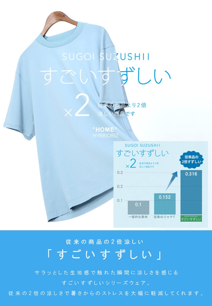 HYBRIDBIZ ハイブリッドビズ すごいすずしい 接触冷感 無地 クルーネック 半袖 Tシャツ
