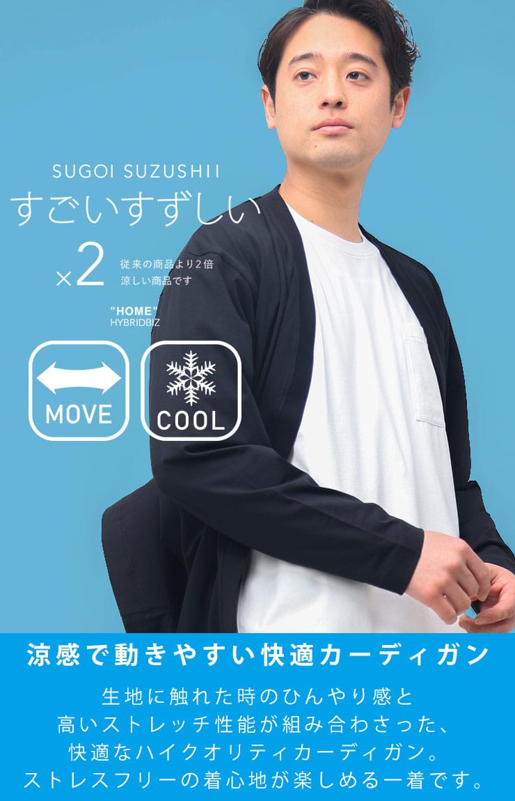 暑い季節を乗り切るための「すごいすずしい」シリーズから、凉しさを感じるVネックカーディガンです。コーデしやすい深めのVネックと高いストレッチ性能を持つ、ストレスフリーの着心地が楽しめる一着。Tシャツやカジュアルシャツなど、コーディネートも自在のユーティリティアイテムです。