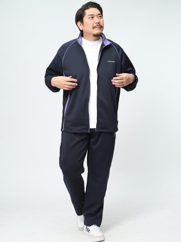 HEADのセットアップは、抗菌防臭加工が施されており、快適な着用感を提供します。吸水速乾性能も優れており、汗を素早く吸収して乾燥させます。スタンドカラーのジャケットとロングパンツの組み合わせは、スポーティかつスタイリッシュな印象を与えます。トレーニングやアクティブなライフスタイルに最適なセットアップです。