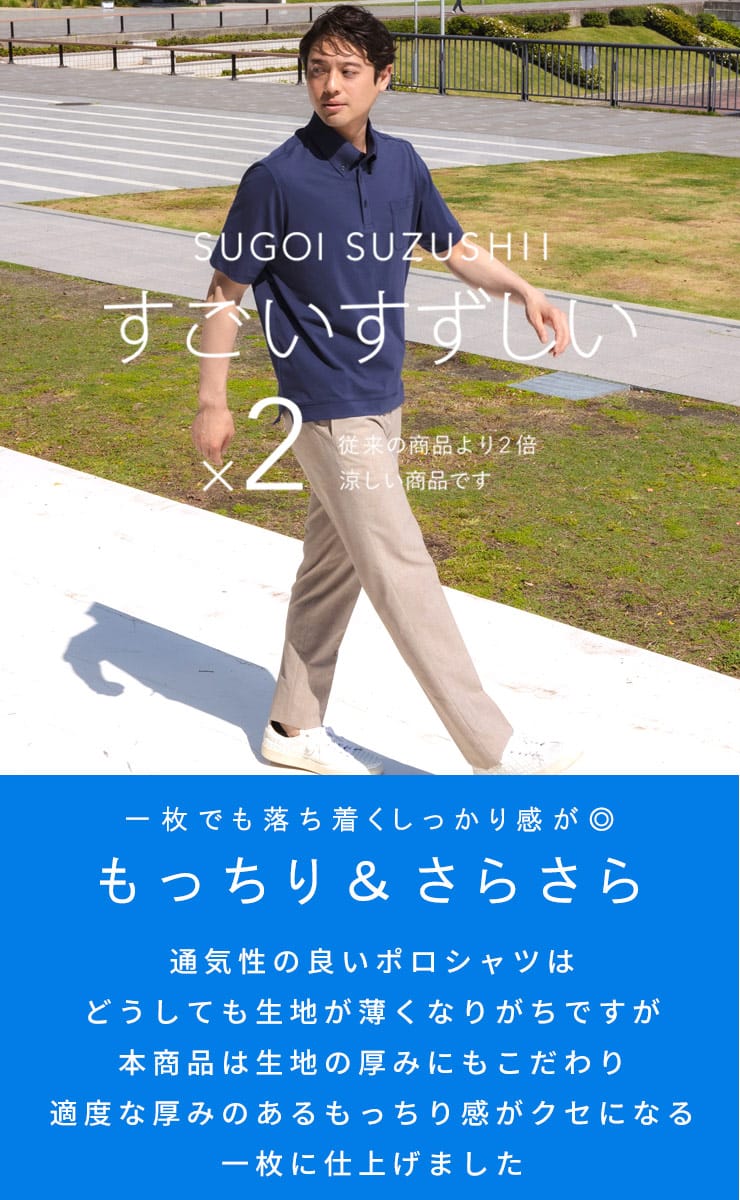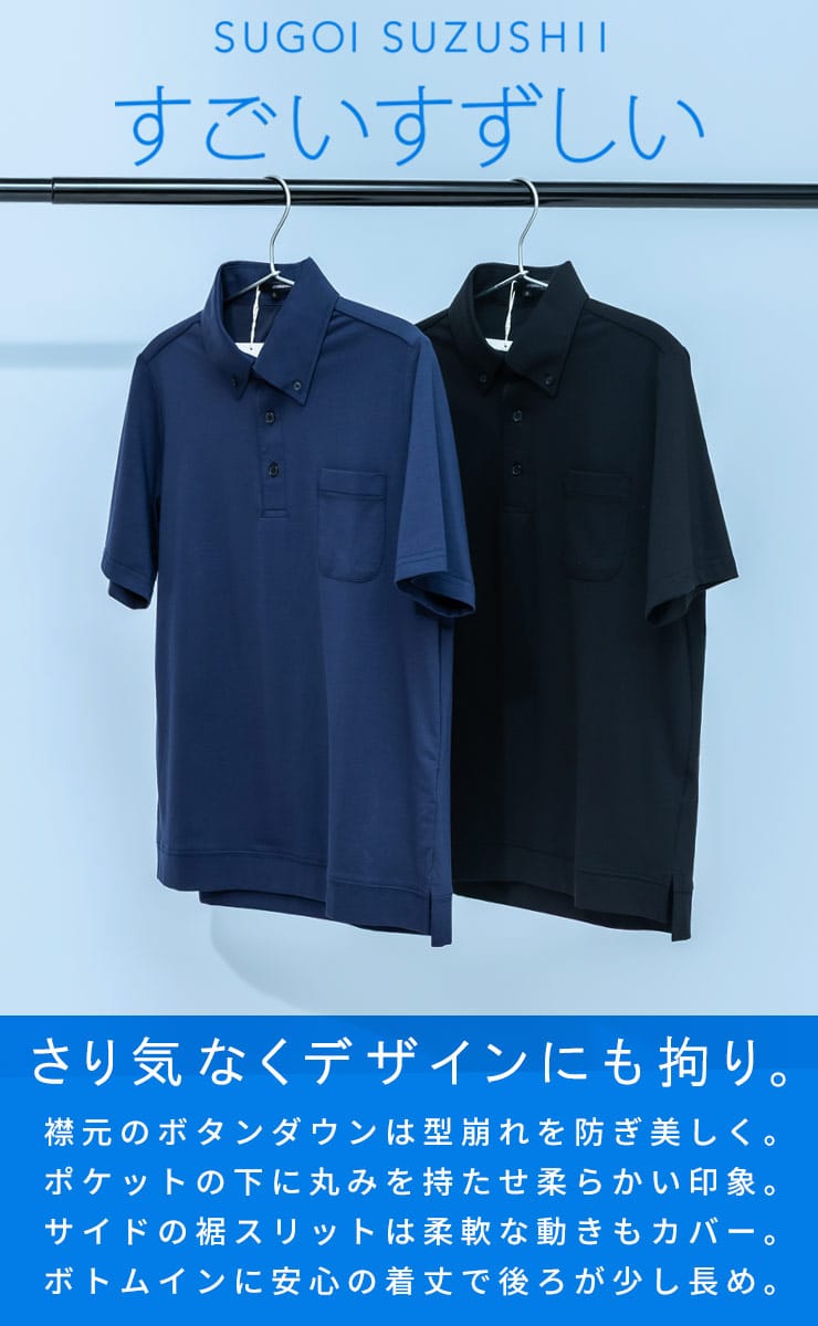 HYBRIDBIZ HOMEの“すごいすずしい”ベア天裏地付き半袖ポロシャツは、従来の商品より2倍涼しく設計されています。伸縮性に優れたストレッチ素材を使用し、動きやすさを実現。裏地付きで快適性が増し、暑い日も涼しく過ごせます。カジュアルからビジネスシーンまで幅広く活躍するアイテムです。
