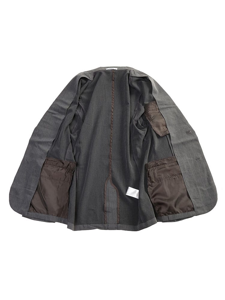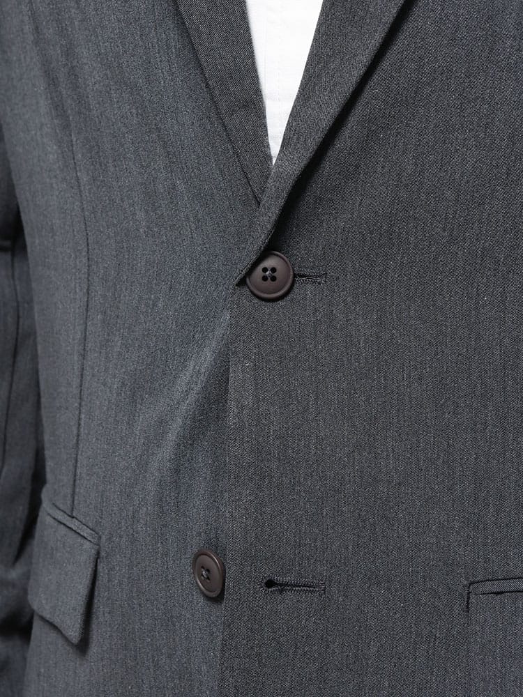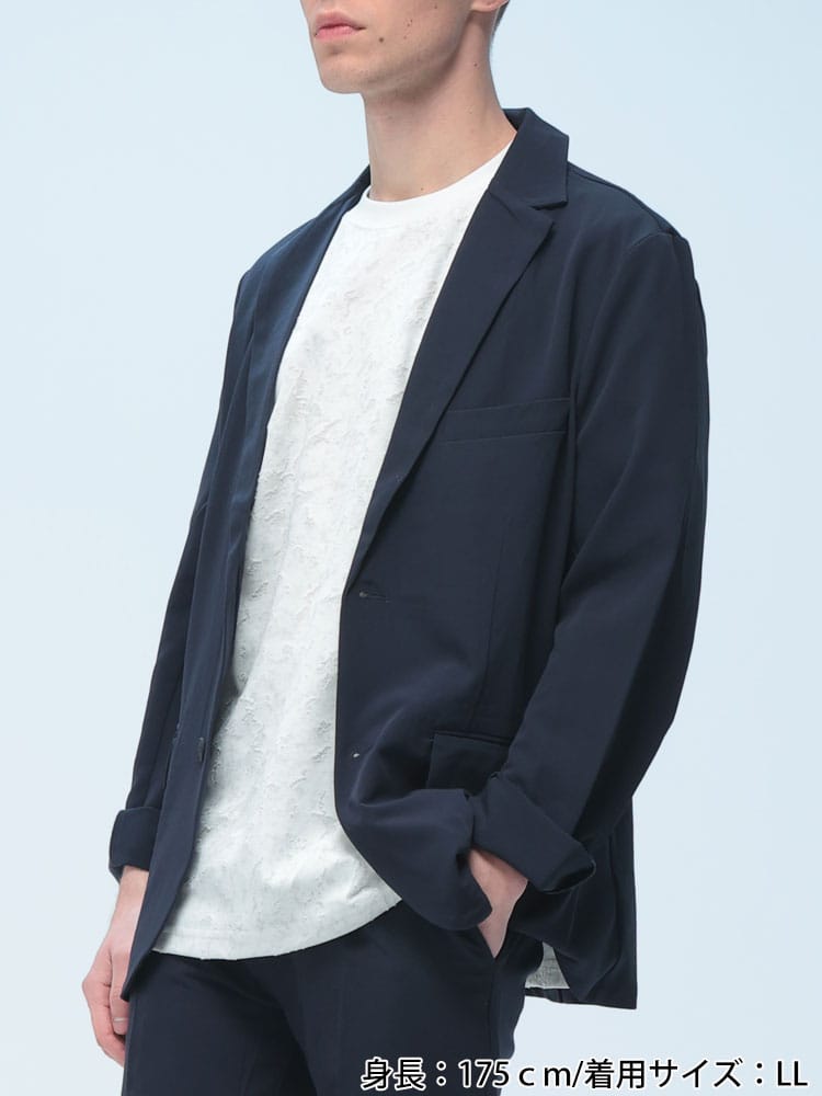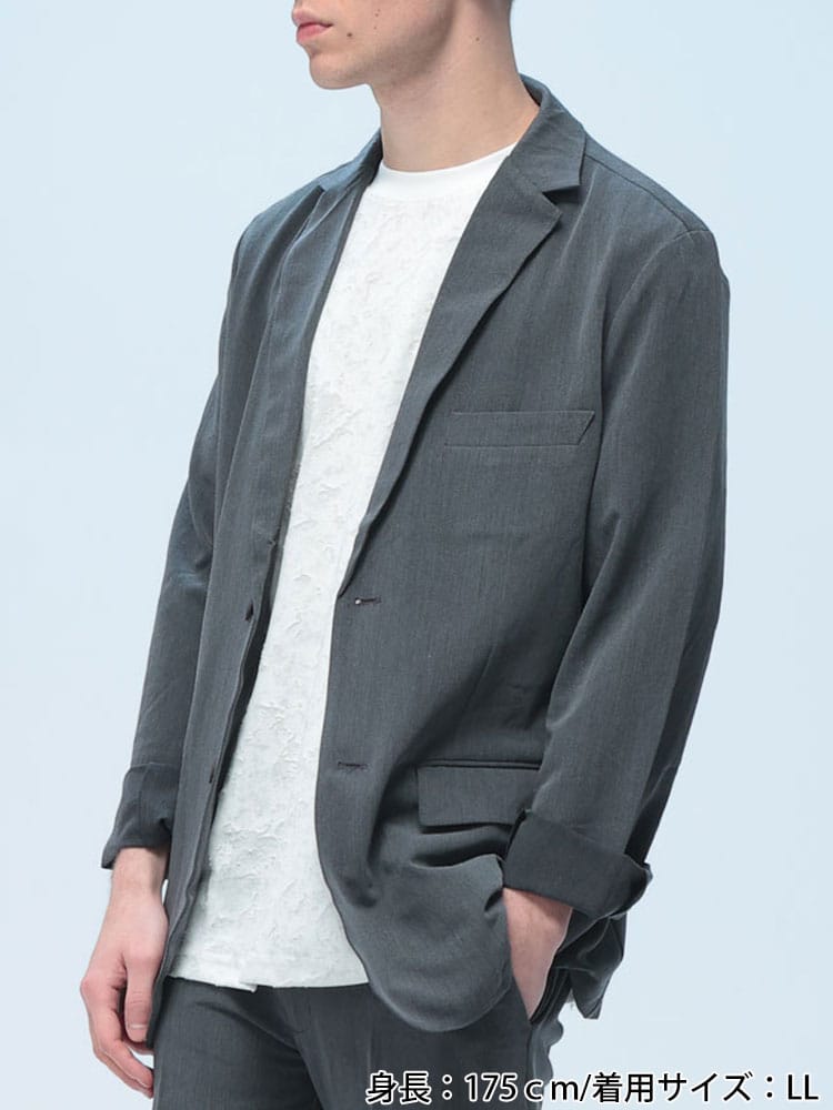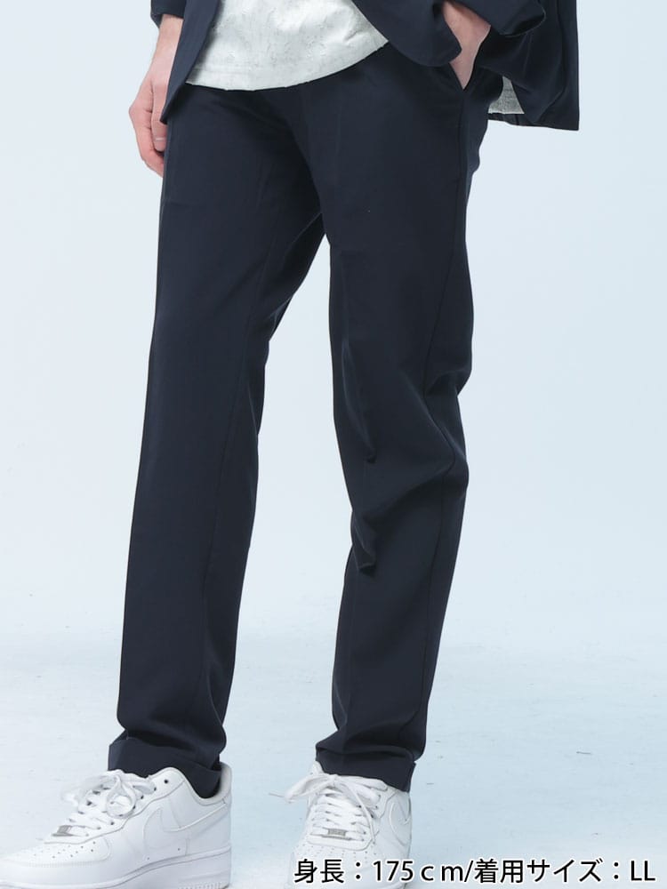 無地のシンプルなデザインのテーラードジャケットとノータックパンツのセットアップ。無駄を削ぎ落した品のあるデザインにストレッチ性のある生地を使用したデザイン性と機能性を両立した一着。一着あればお洒落に決まるおすすめのアイテムです。※こちらの商品はパンツの裾デザインがダブル仕上げの都合上、裾上げ不可となります。