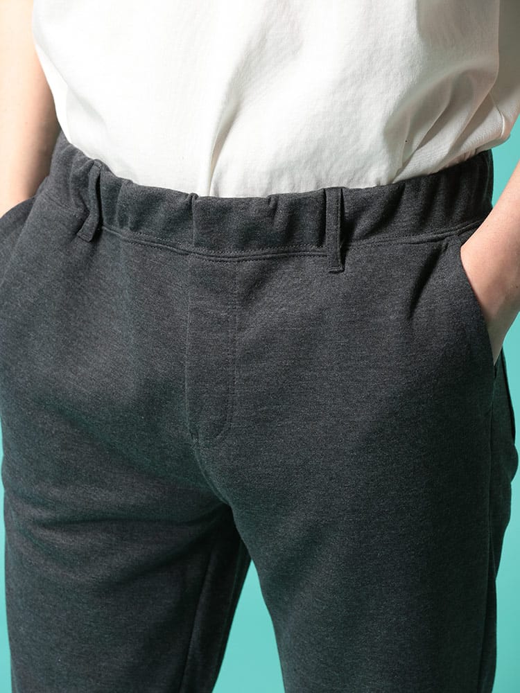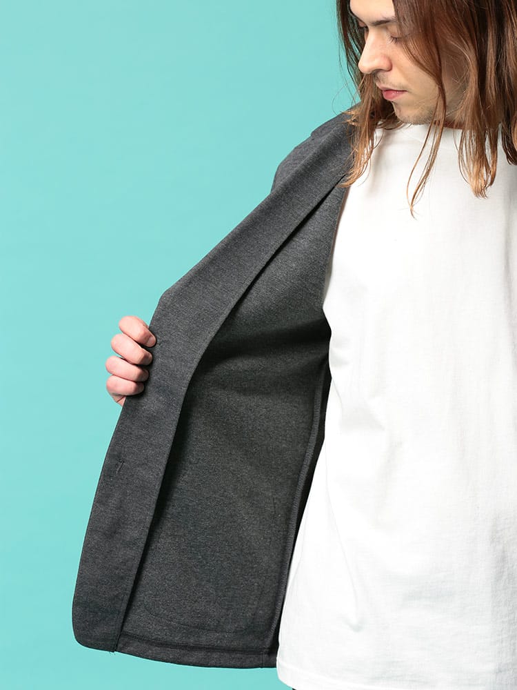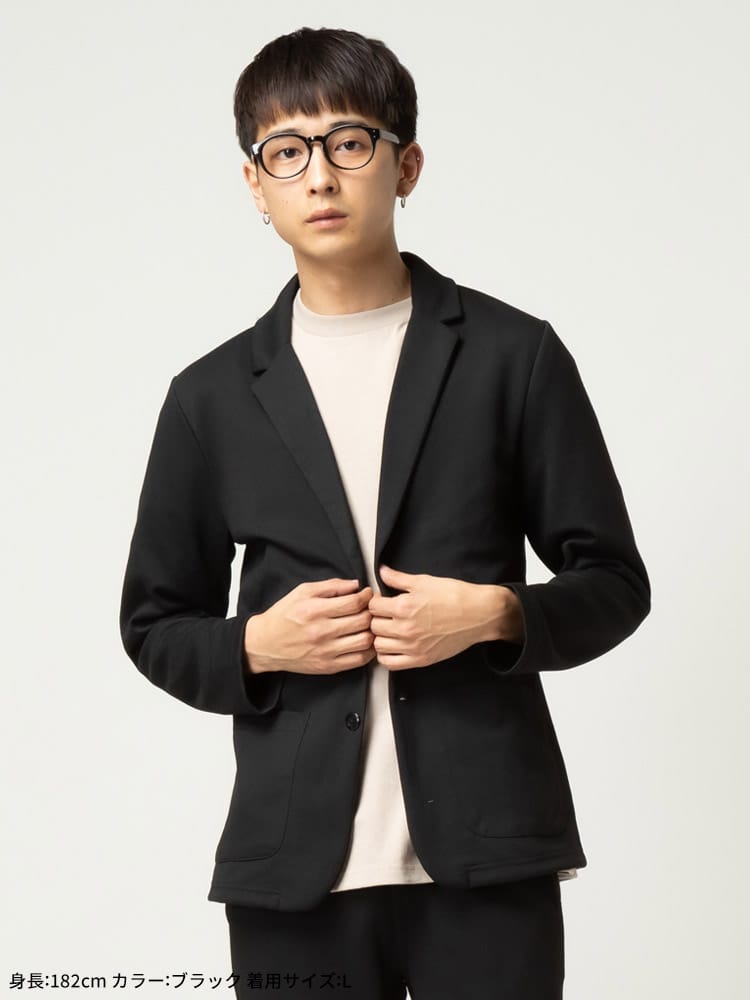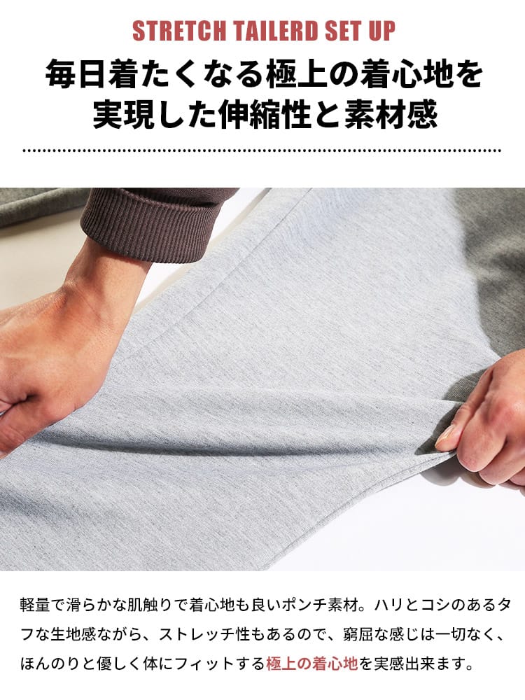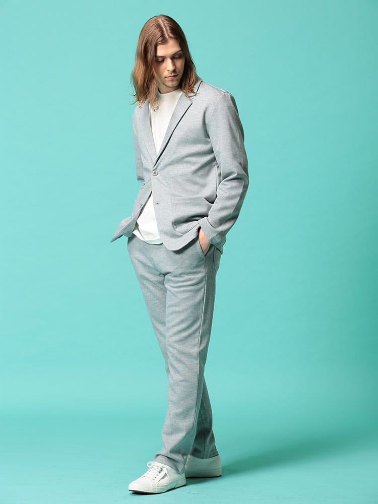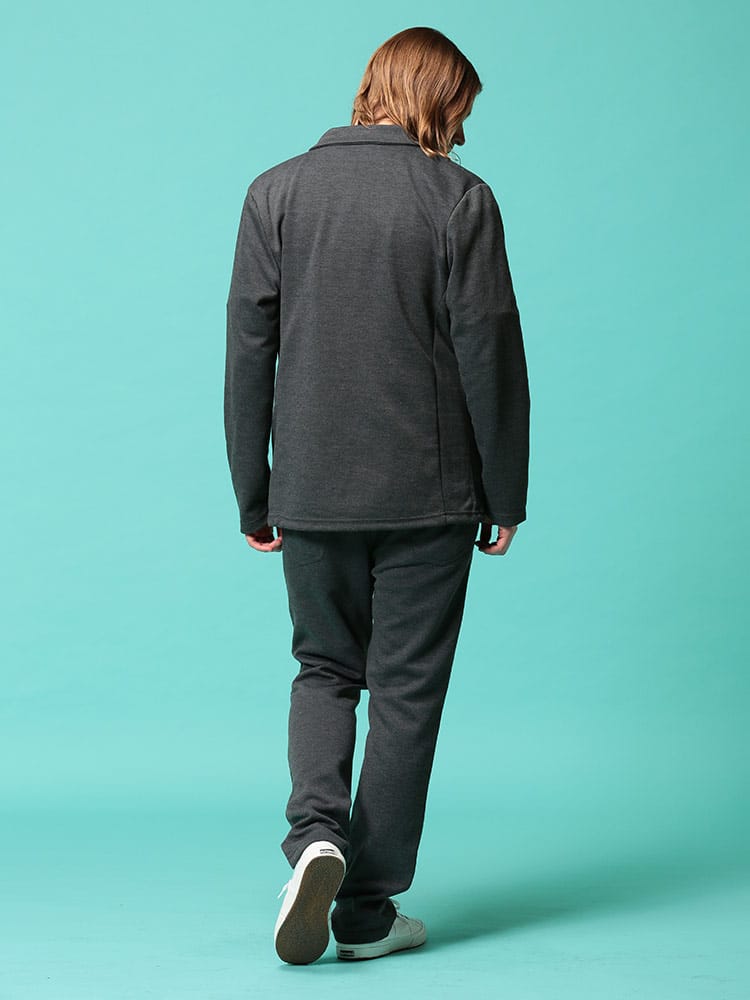 肌触りの良いポンチ素材で仕上げたテーラードジャケットとパンツのセットアップです。無地のシンプルなデザインでどんなシーンにもマッチします。ジャケットはシングル2つボタン。パンツのウエストはゴムとドローコード付きでサイズ調整が出来ます。キチンと感があるアイテムでオンオフで着ていただける一着です。