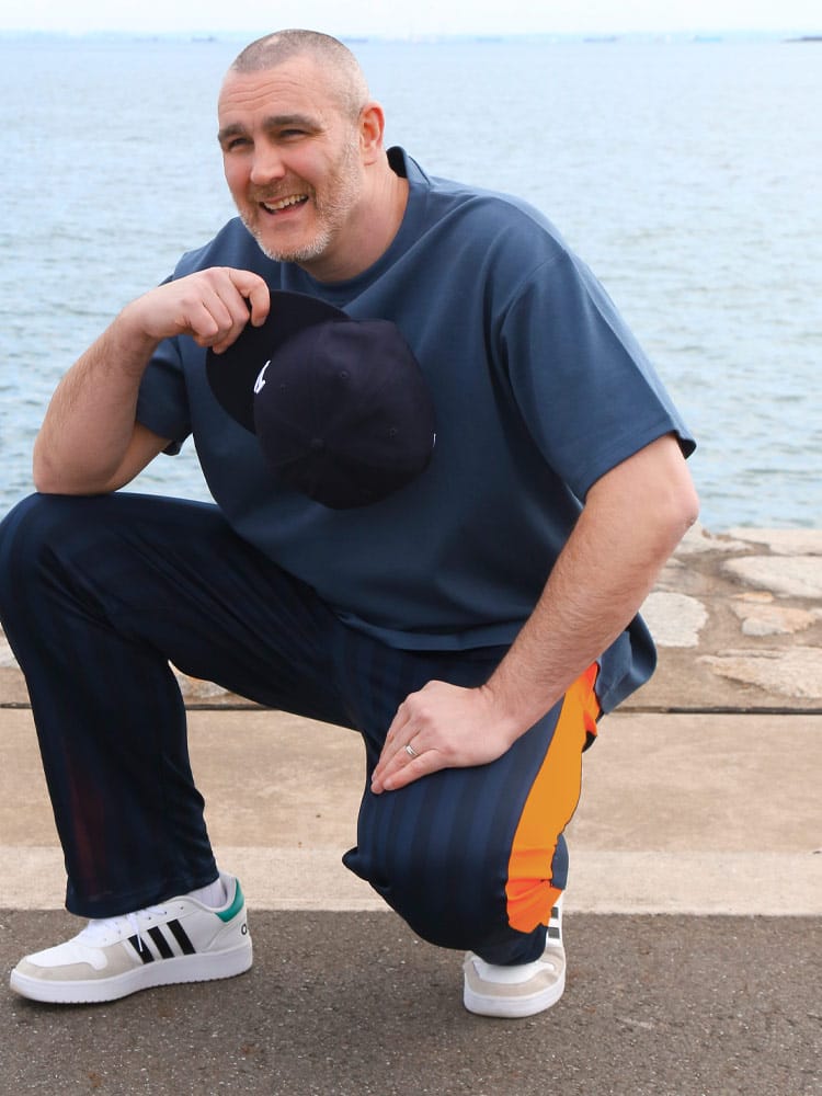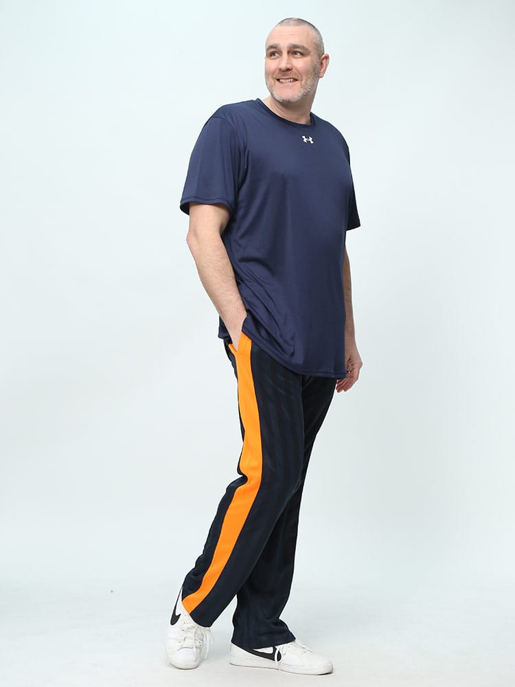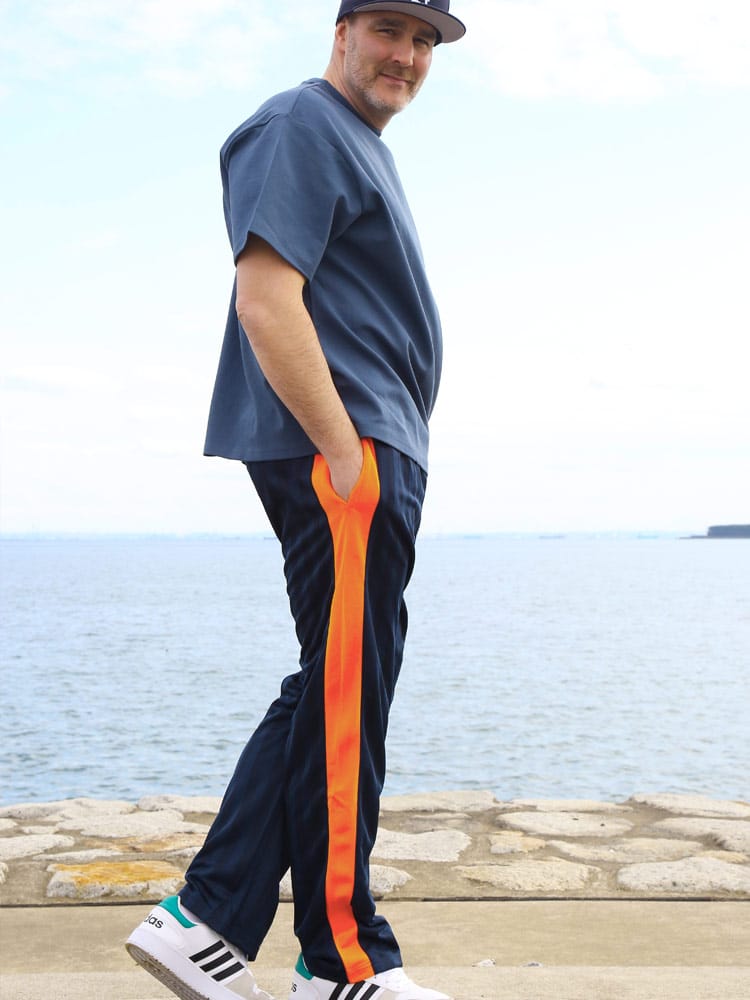 SKKONEのシャドーボーダージャージパンツは、ウエストドローコード付きで調節可能な快適なフィット感を提供します。独特なシャドーボーダーデザインが特徴で、スタイリッシュながらも機能的なアクティブウェアです。運動時の快適性と日常のカジュアルな着こなしに最適。
