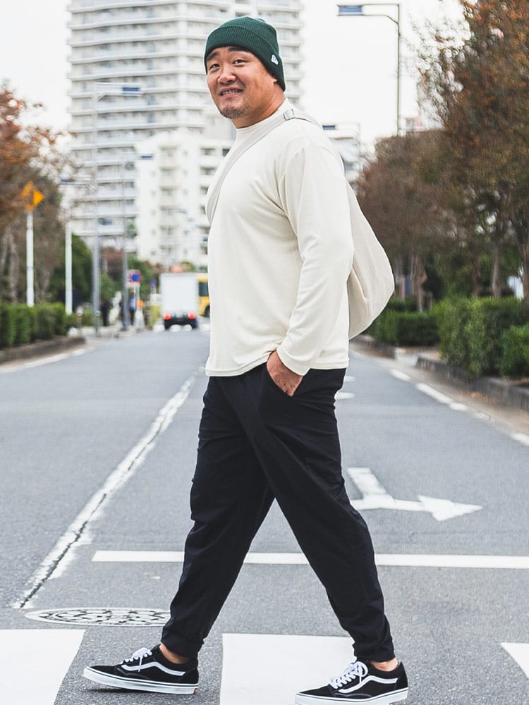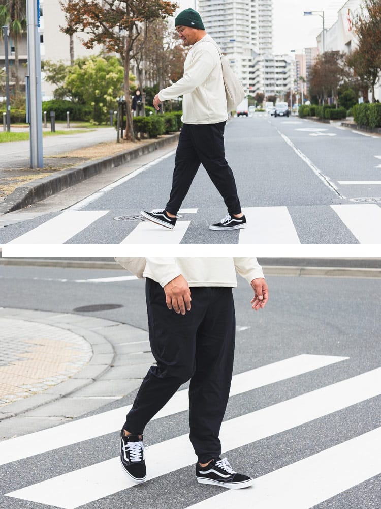 また、本来のジョガーパンツのシルエットはそのままに、裾の締め付けを緩めに調整したので足首の締め付けを解消。