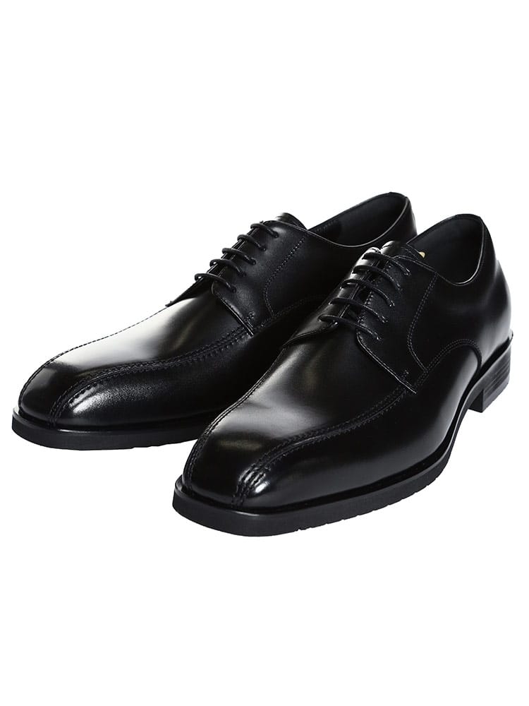 日本製の外羽根 スワール ビジネスシューズです。5Eのワイドシルエットがゆったりとした履き心地のシューズ。屈曲性能が高いので歩く際に足の動きを遮りません。ソールは衝撃を吸収し耐摩耗ヒールが長い期間使用できるつくりとなっています。抗菌防臭加工も施されている、ビジネスマンに嬉しい機能満載のシューズとなっています。