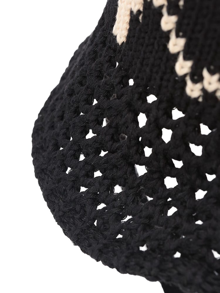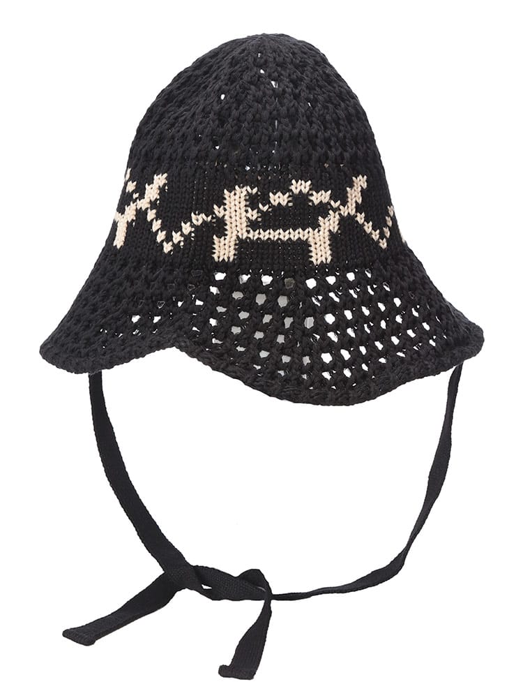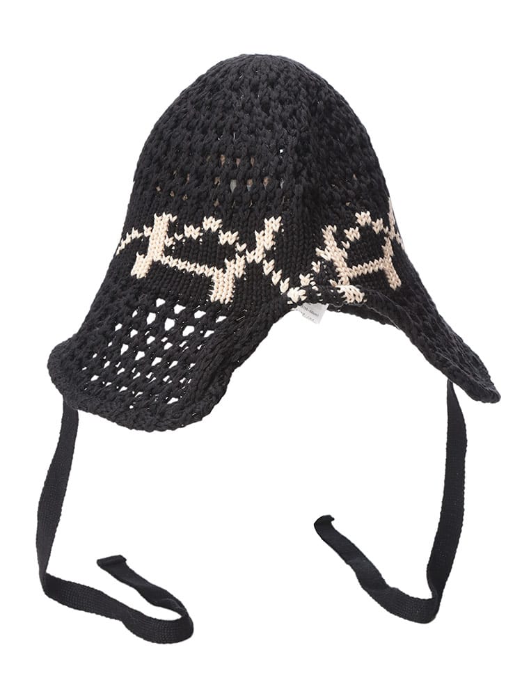 VARZARのデジタルロゴパンチングボンネットハットは、独創的なデジタルロゴパターンと通気性の良いパンチング編みが特徴です。つばにワイヤーが入っており、自由な形にアレンジ可能。深く被れるシルエットは小顔効果も期待でき、紫外線対策にも優れています。カジュアルからモードまで、幅広いスタイルに溶け込む万能アイテムです。