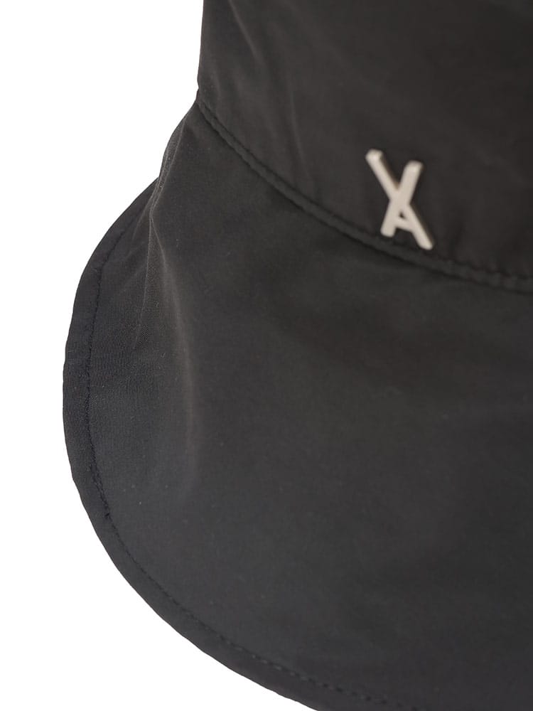 VARZARの「ロゴスタッズソーラーシールドバケットハット」は、機能性とデザイン性を兼ね備えたアイテムです。つばが広く設計されており、強い日差しから顔を守るソーラーシールド機能を搭載。ブランドロゴのスタッズがエッジを効かせ、シンプルながらも個性的なスタイルを演出します。