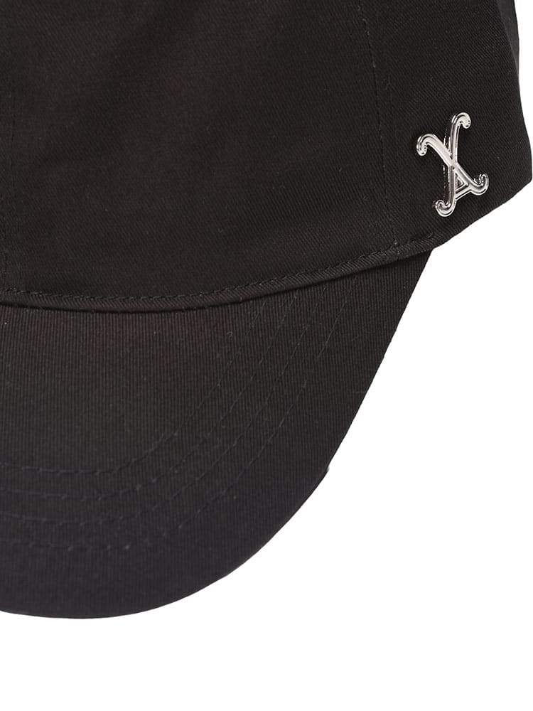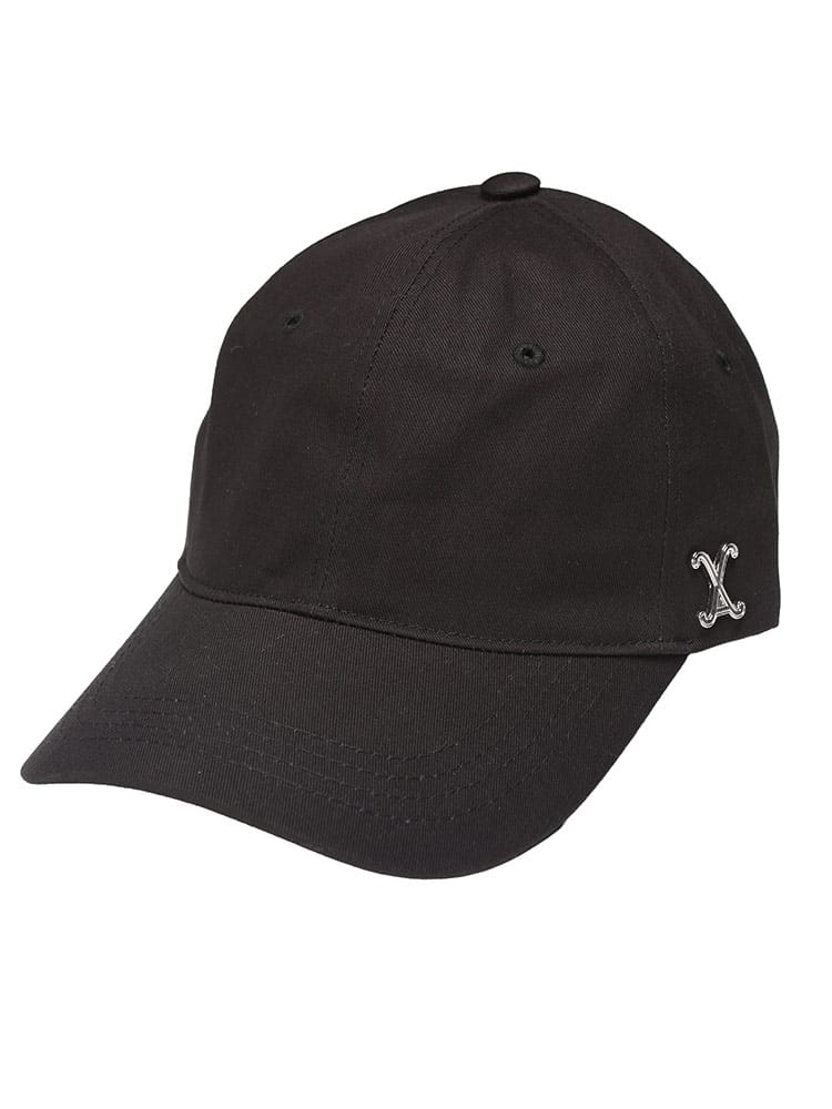バザールのコットン カーブスタッズ キャップは、頭の形に沿う深いカーブのつばが特徴です。小顔に見せる効果が期待でき、シンプルなデザインながらも、サイドに施されたスタッズがクールなアクセントになっています。