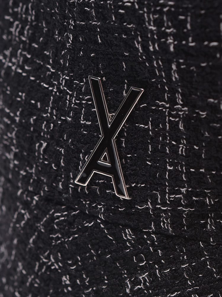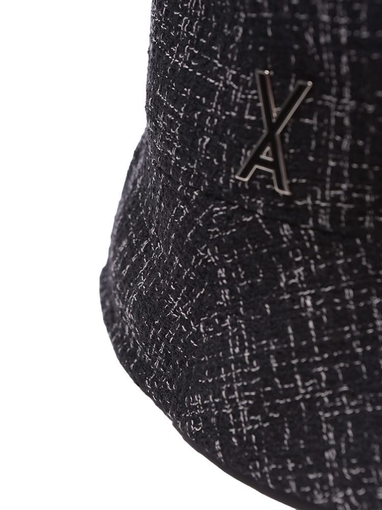 季節感のあるツイード素材にワンポイントのブランドロゴがあしらわれた、上品ながらもエッジの効いたアイテムです。深めのクラウンと計算された美しいシルエットが、顔周りをすっきり見せ、小顔効果を発揮。カジュアルからきれいめまで幅広いスタイルに合わせやすい、トレンド感のある帽子です。