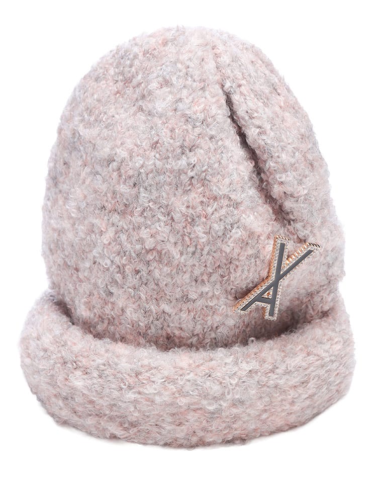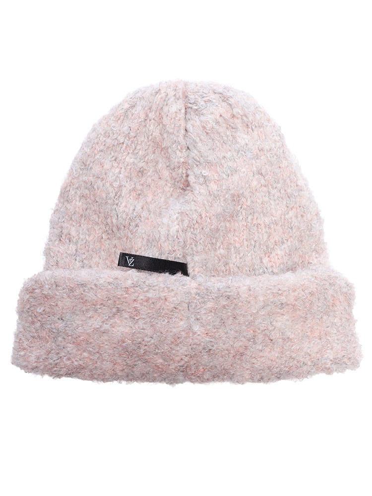 ボカシ糸で編まれたミックスカラーがユニークで、ふわふわとした柔らかな肌触りが特徴。ルーズなフィット感で快適な被り心地を提供します。取り外し可能なVAロゴブローチが高級感を演出し、他のアイテムにも活用可能。保温性にも優れ、秋冬のコーディネートに暖かくスタイリッシュなアクセントを加えます。