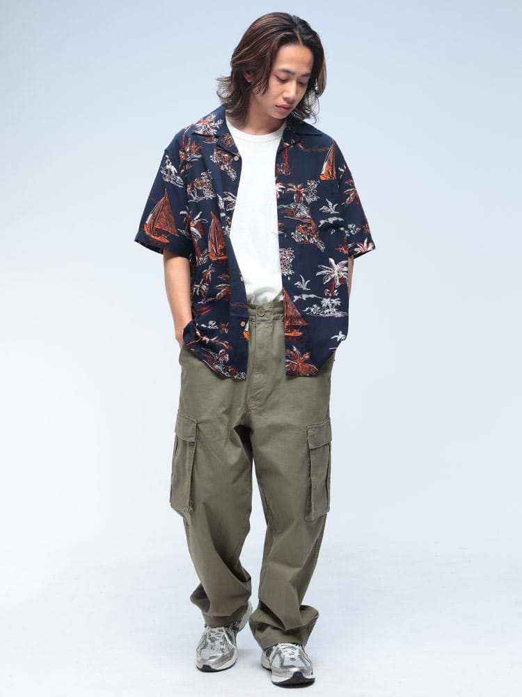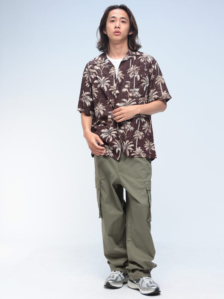 リゾート感満載!夏スタイルに欠かせないアロハシャツです。てろんとした柔らかな素材感が魅力のレーヨン100%を使用しておりストレスのないサラッとした着心地。カラーは選べる7色展開。モノトーンベースなので合わせ易く、デニム、チノ、ショートパンツなど定番ボトムスとも相性抜群!手ごろなプライスとなっているのでアロハシャツデビューの方に是非オススメ!もちろん2枚目、3枚目をお探しの方にも自身を持ってオススメします☆
