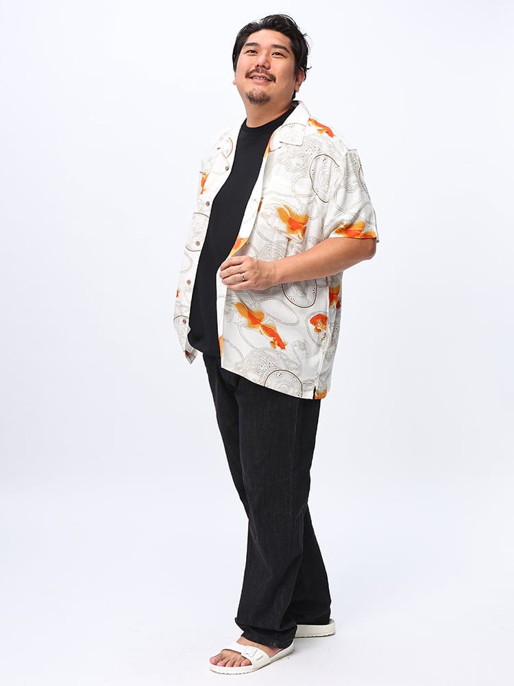 特に大きいサイズを豊富に取り揃えており、3Lから10Lまでの幅広いサイズ展開で、多くの方にフィットする一枚です。