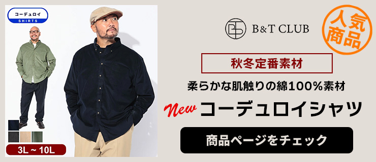 秋冬の装いにぴったりなB&T CLUBのコーデュロイ長袖シャツです。