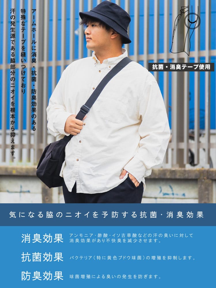 特に注目すべきは、アームホールに施された消臭・抗菌・防臭効果のある特殊なテープを縫い付けており、汗の発生源である脇部分のニオイを根本から抑えます。