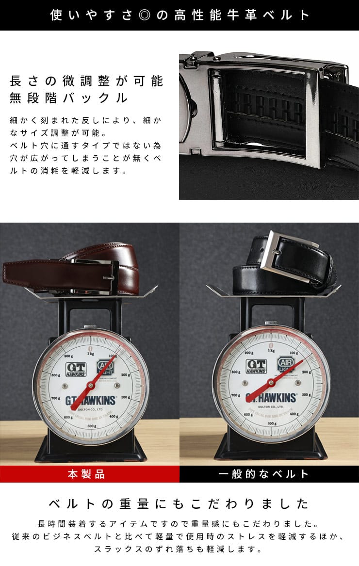 ハイブリッドビズの超軽量牛革アジャスター調節ビジネスベルトは、スマートなビジネスマンのためのアイテムです。高品質の牛革を使用し、その超軽量設計は日常のビジネスシーンにおいても負担を感じさせません。アジャスターによる調節機能は、簡単にサイズ調整が可能で、常に最適なフィット感を提供します。洗練されたデザインは、ビジネスカジュアルからフォーマルまで幅広く対応し、どんなスーツにもマッチする汎用性の高さを誇ります。