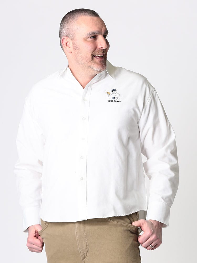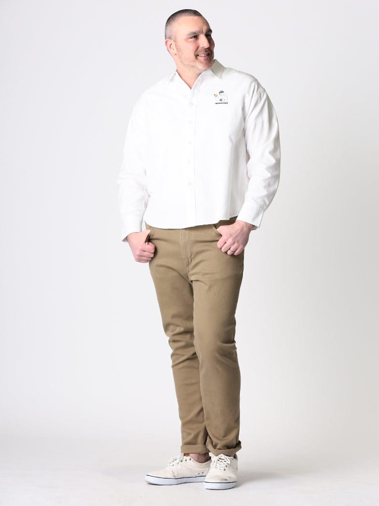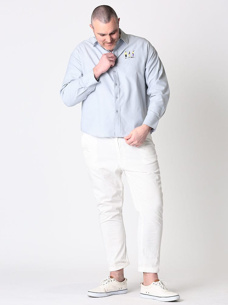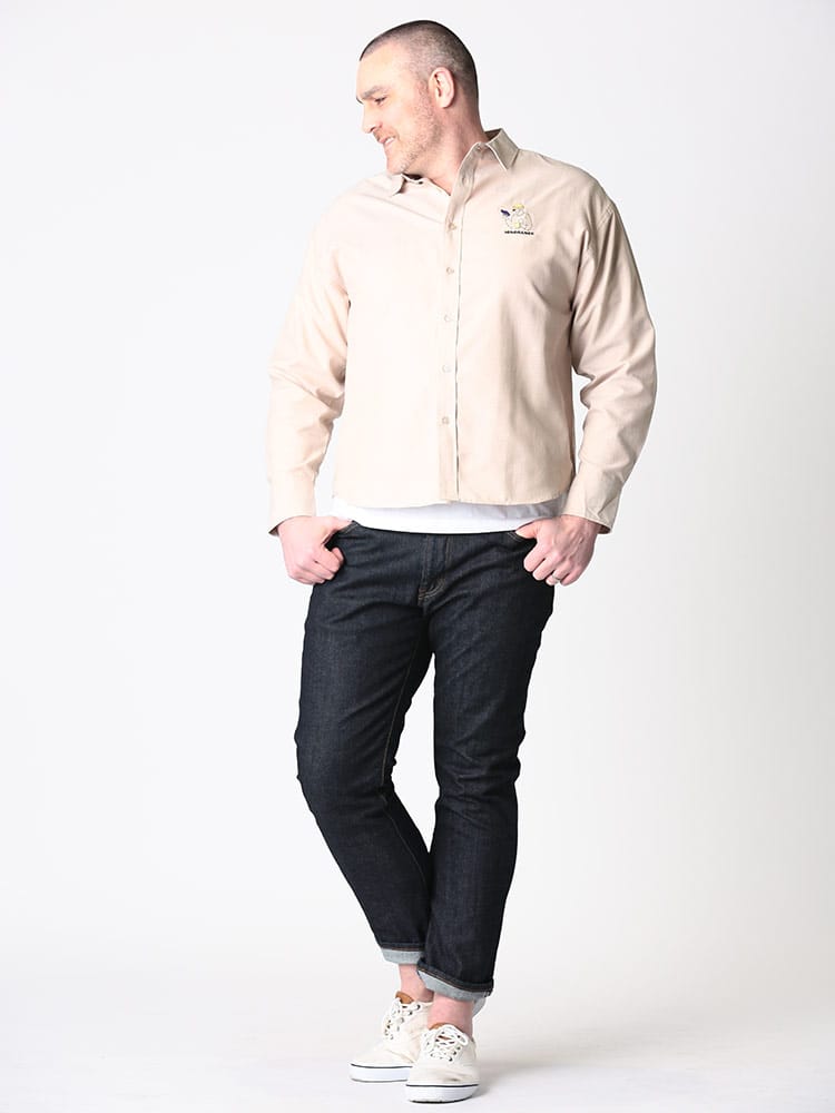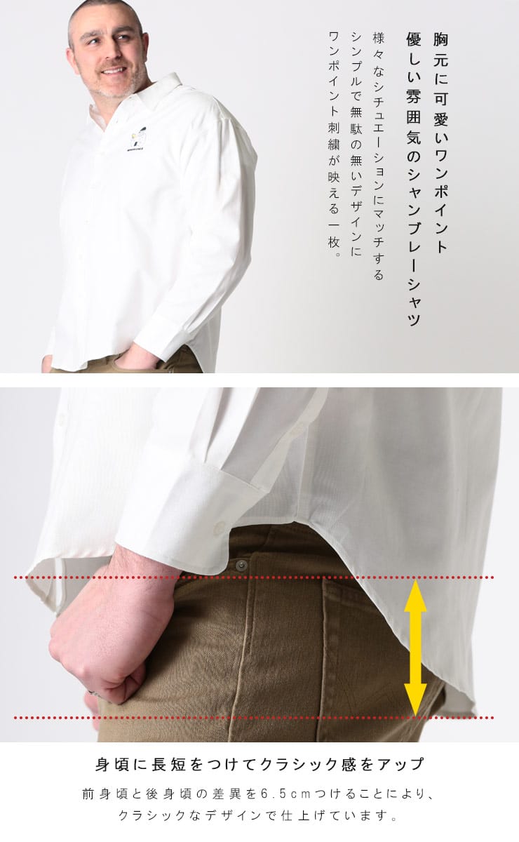 オックスよりもライトな風合いに仕上げたシャンブレーシャツ。襟もとはすっきりとしたレギュラーカラーを採用。胸元にはワンポイントでストリート感漂う可愛いワンポイント刺繍。袖口は縦に2つ並んだボタン仕様で、袖まくりなどのシルエット変化を楽しめます。裾は前身、後身で長さに差をつけて、クラシックなデザインで仕上げています。様々なスタイルにフィットするアイテムなので、毎日着たくなる一枚です。