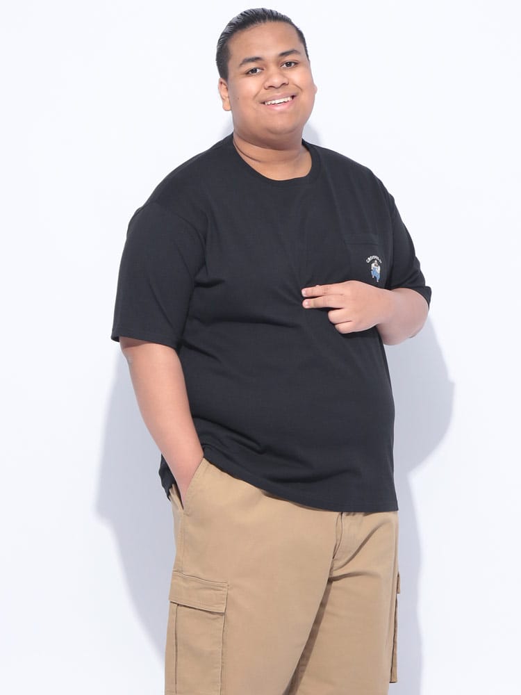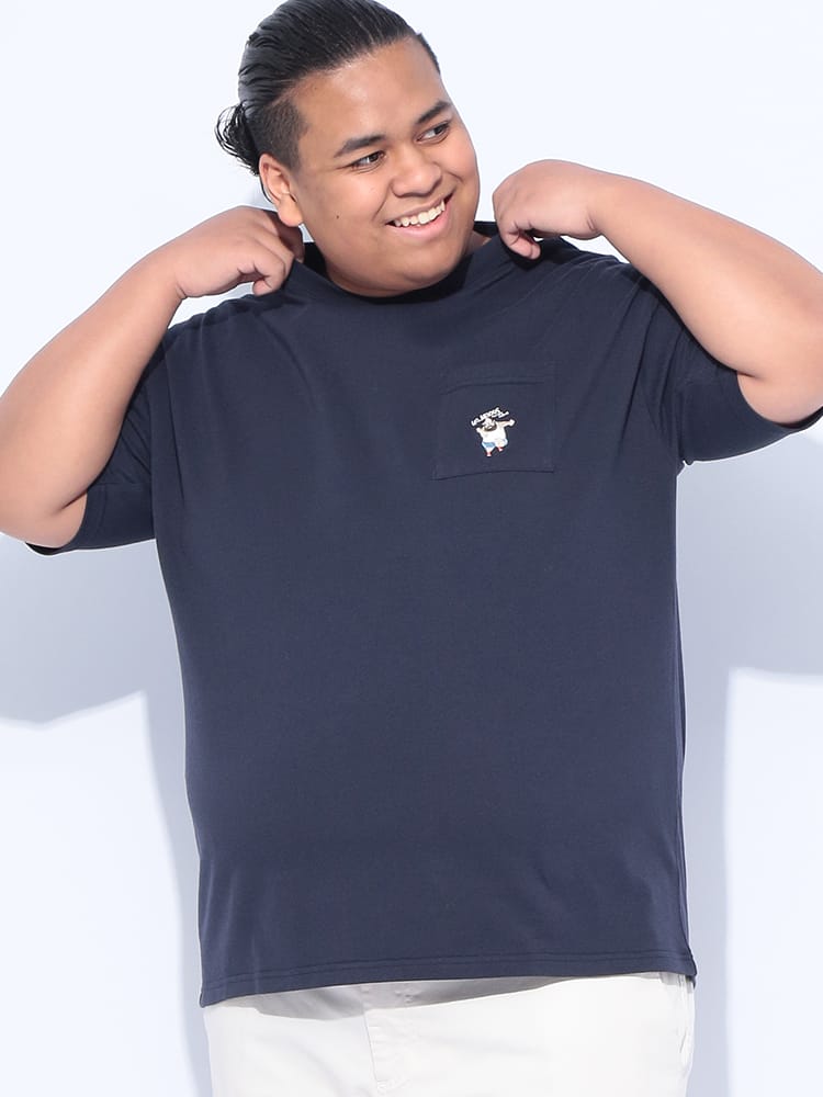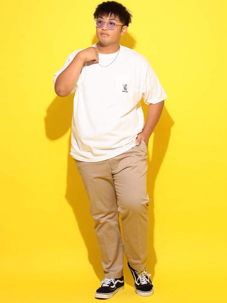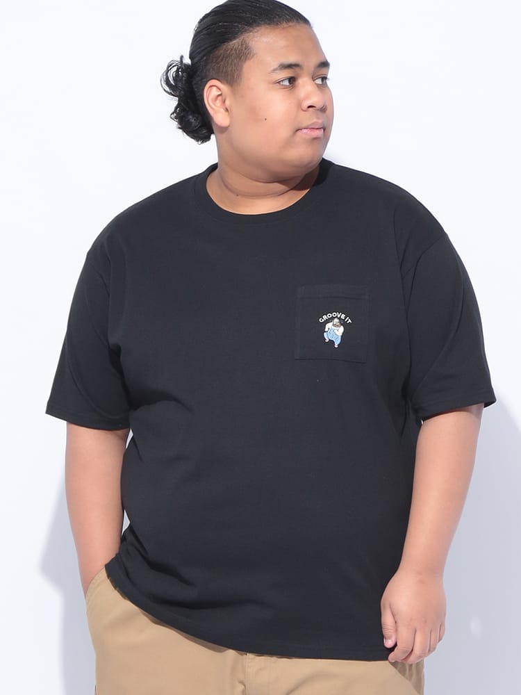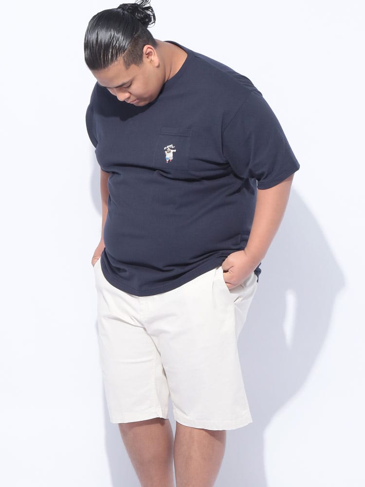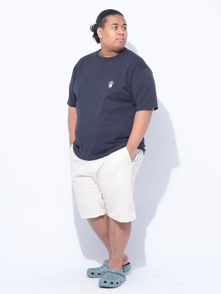 シンプルなデザインながら、胸元のポケットに施されたおじさんの刺繍がアクセントになっています。