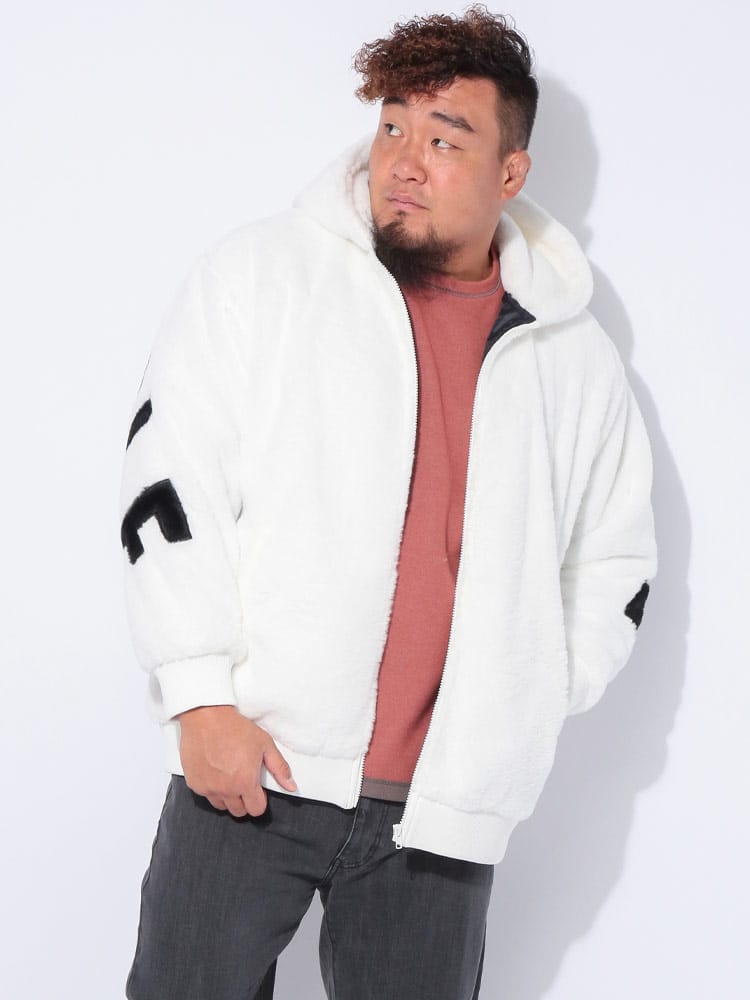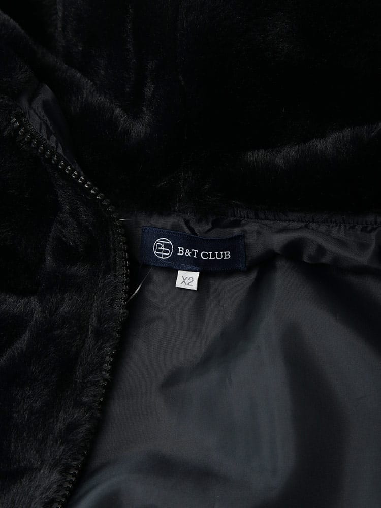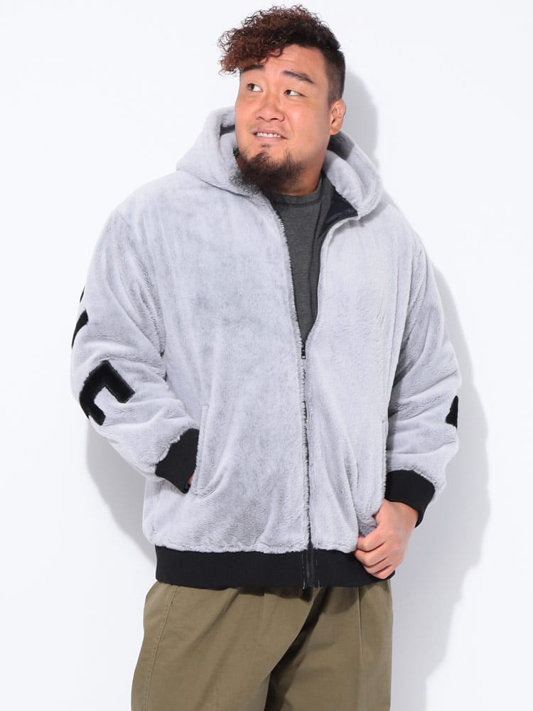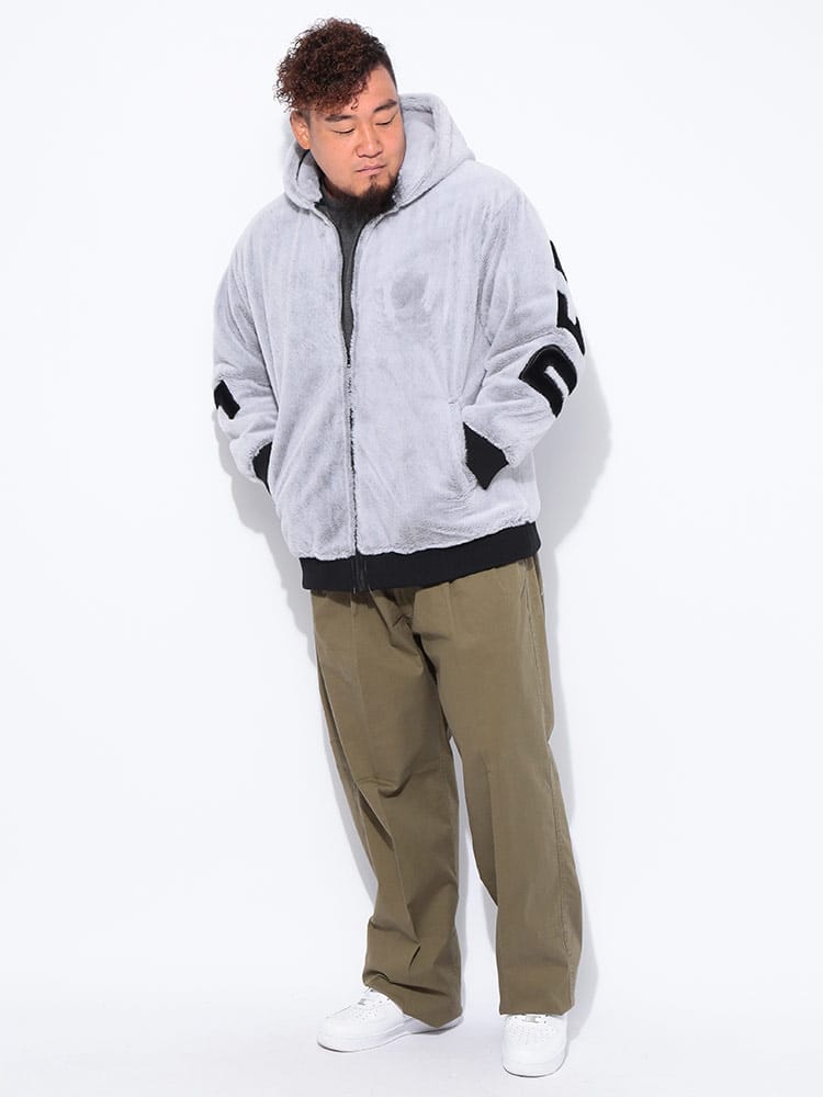 トレンド感満載! B&T CLUBから、圧倒的な存在感を放つフルジップファーブルゾンが登場。肌触り抜群の肉厚なファー素材を全身に使用し、袖を通した瞬間から暖かく、ストリートで視線を惹きつける一枚です。最大の魅力は、背中に大胆に施されたビッグなロゴデザイン。シンプルなフロントとは対照的に、後ろ姿でストリート感と遊び心を強烈にアピールします。裏地付きで袖通しもスムーズ、風を通しにくく保温性も抜群です。大きめサイズを活かしたストレートラインシルエットで、今どきのゆったりとした着こなしが完成。手軽に羽織れて、主役級の存在感を発揮する、冬の必須アウターです!