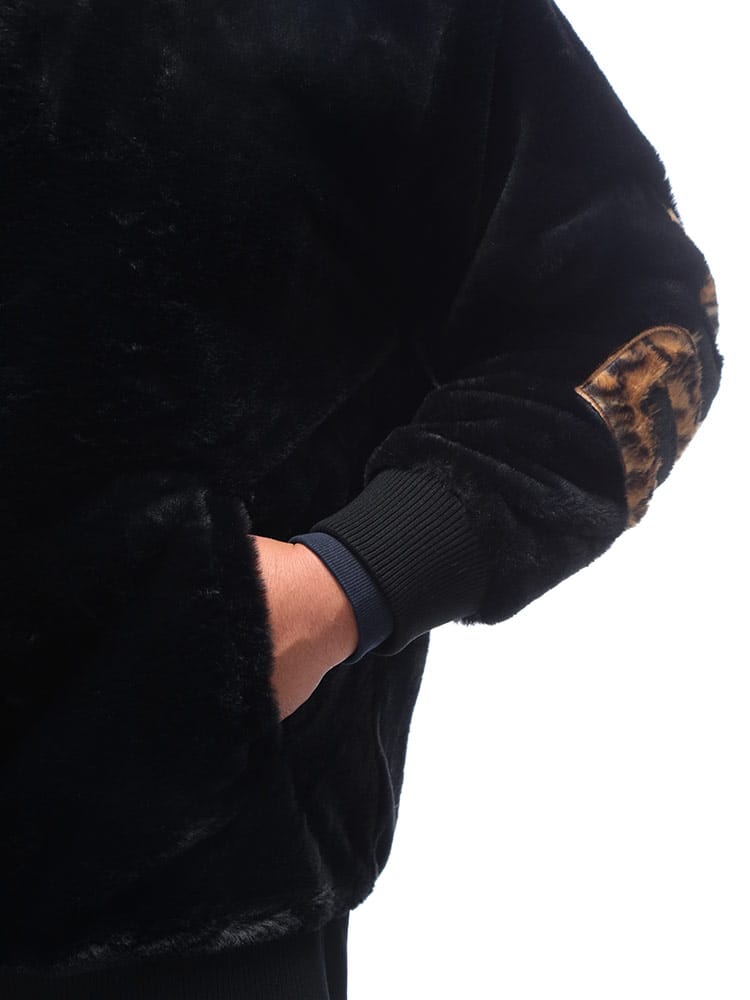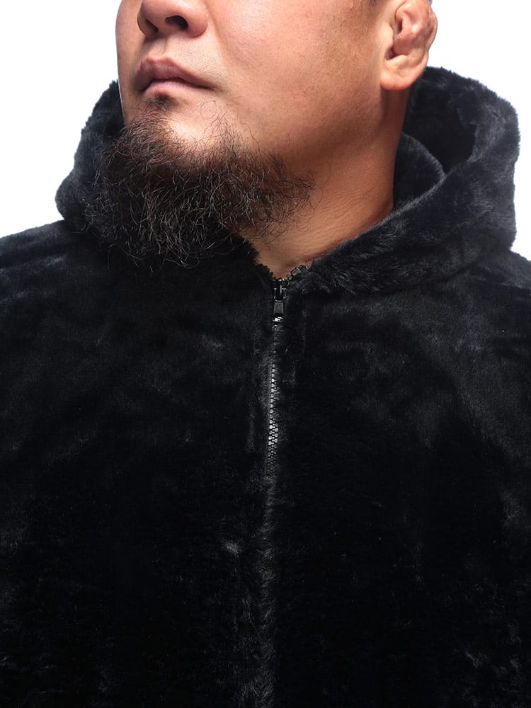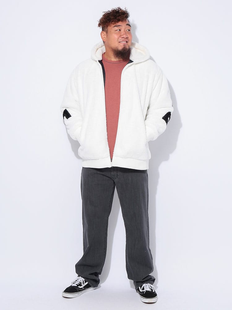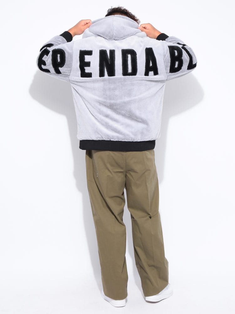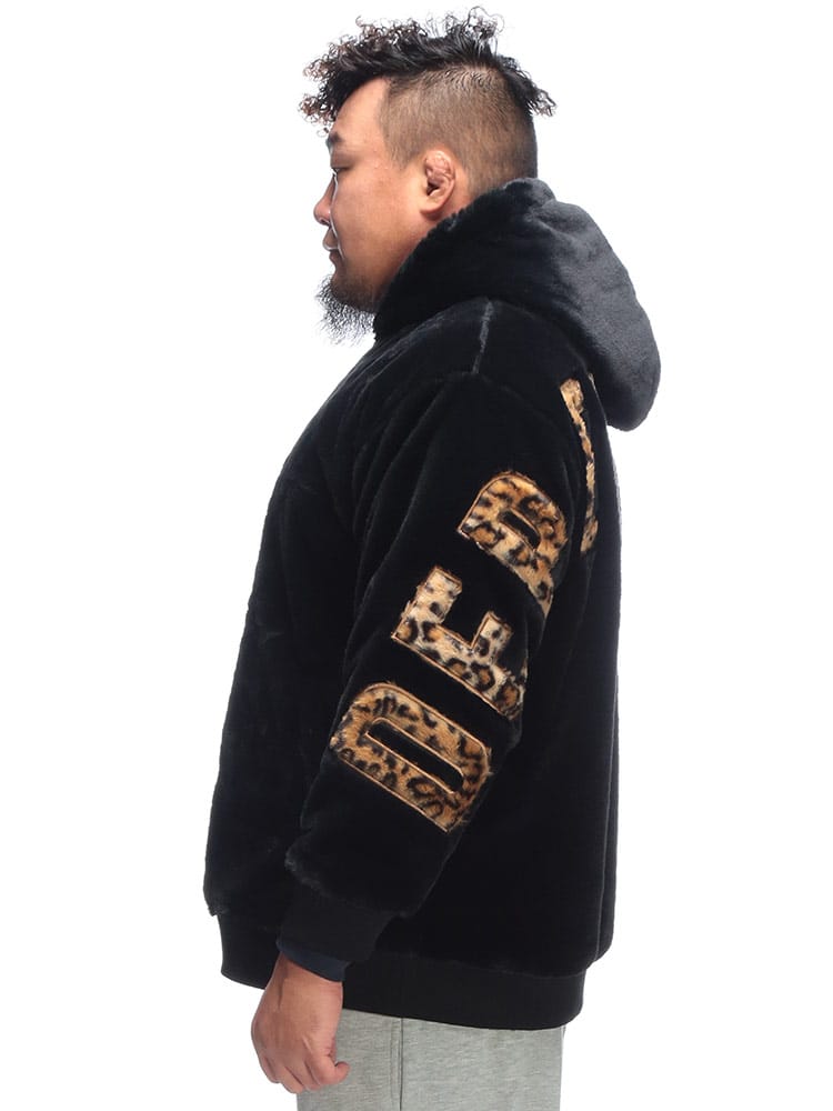 トレンド感満載! B&T CLUBから、圧倒的な存在感を放つフルジップファーブルゾンが登場。肌触り抜群の肉厚なファー素材を全身に使用し、袖を通した瞬間から暖かく、ストリートで視線を惹きつける一枚です。最大の魅力は、背中に大胆に施されたビッグなロゴデザイン。シンプルなフロントとは対照的に、後ろ姿でストリート感と遊び心を強烈にアピールします。裏地付きで袖通しもスムーズ、風を通しにくく保温性も抜群です。大きめサイズを活かしたストレートラインシルエットで、今どきのゆったりとした着こなしが完成。手軽に羽織れて、主役級の存在感を発揮する、冬の必須アウターです!