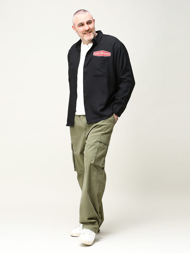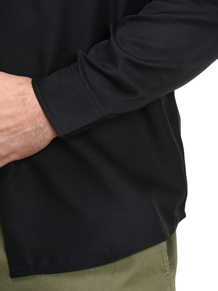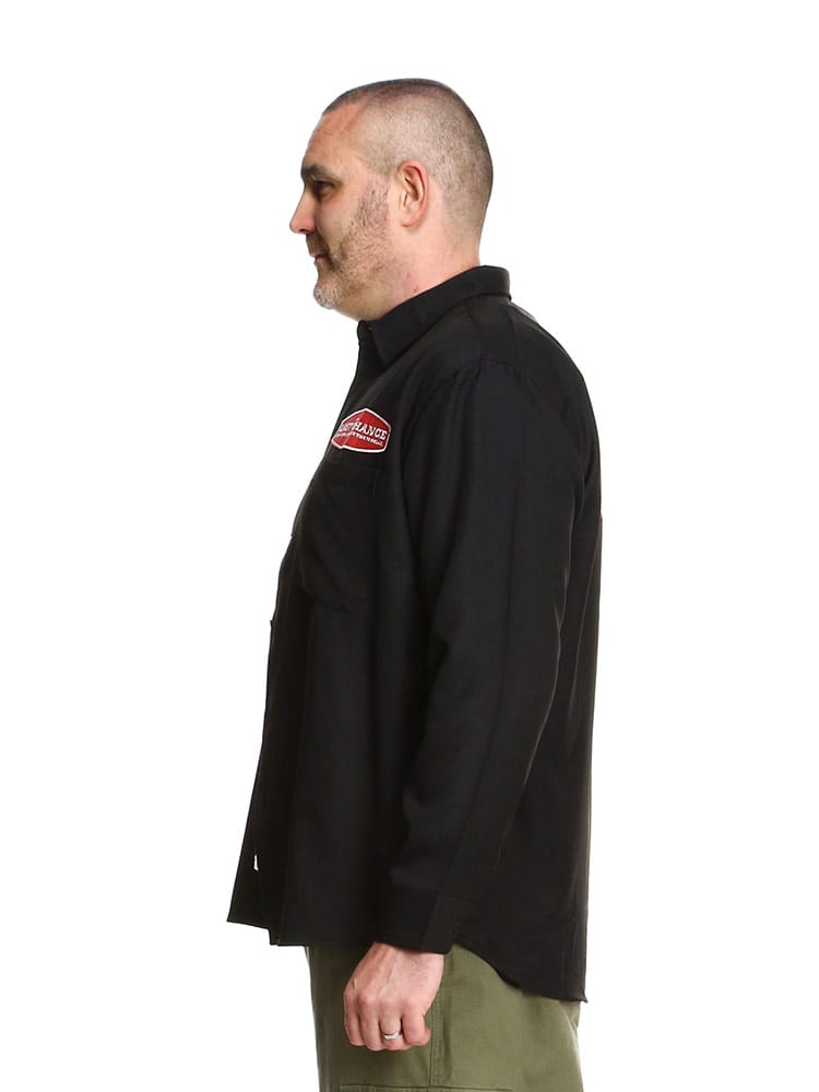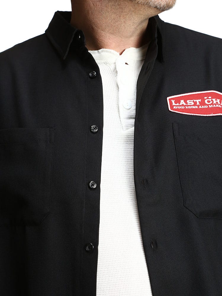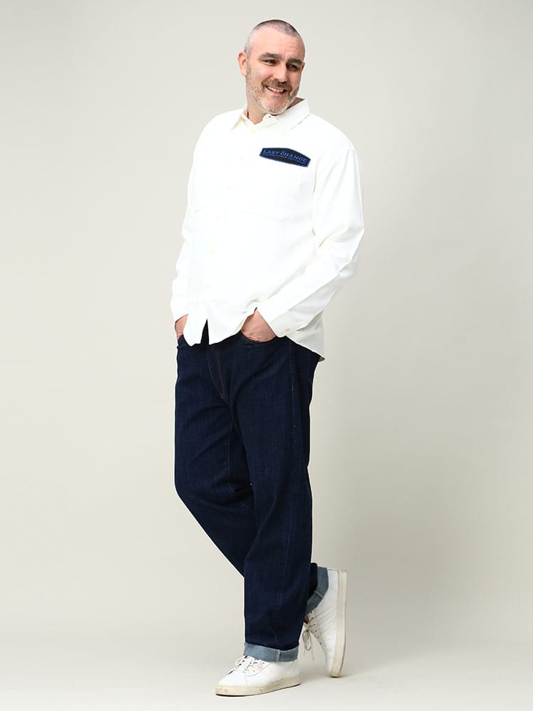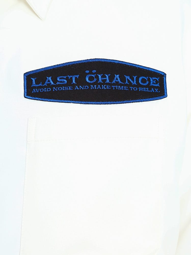 滑らかで上品な質感が魅力のツイル 刺繍ポケット 長袖 シャツです。落ち着いたシルエットの胸ポケット上と背中に大きく乗ったワッペンがアクティブなイメージを与えてくれるデザインです。