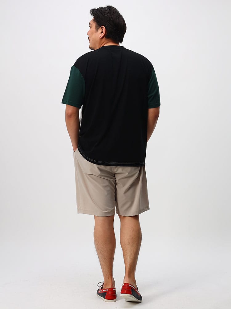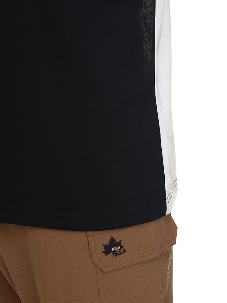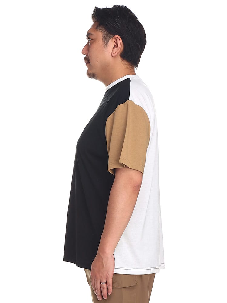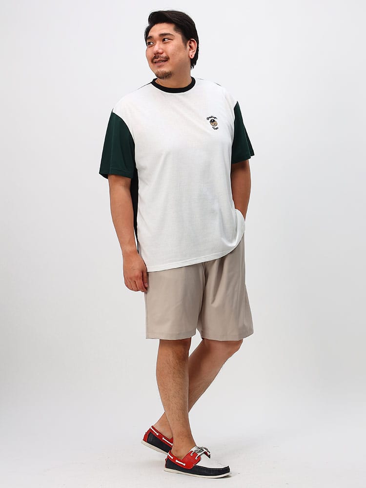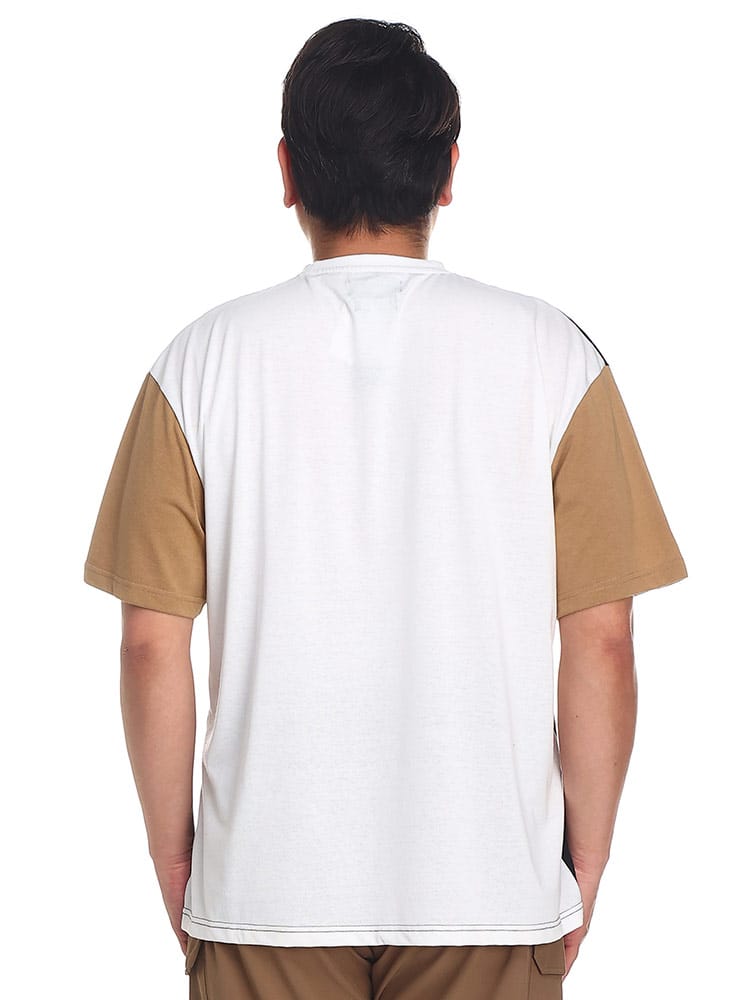 B&T CLUBのBROOKLYN BEAR サガラ刺繍 クルーネック 半袖 Tシャツ。胸元に小さくサガラ刺繍で描かれたかわいらしいクマがワンポイント。フロント、バック、袖と、切り替えによって色の違う生地をしたポップな印象の一着です。