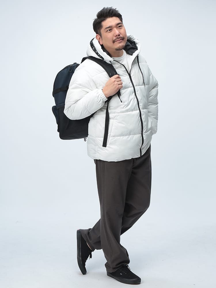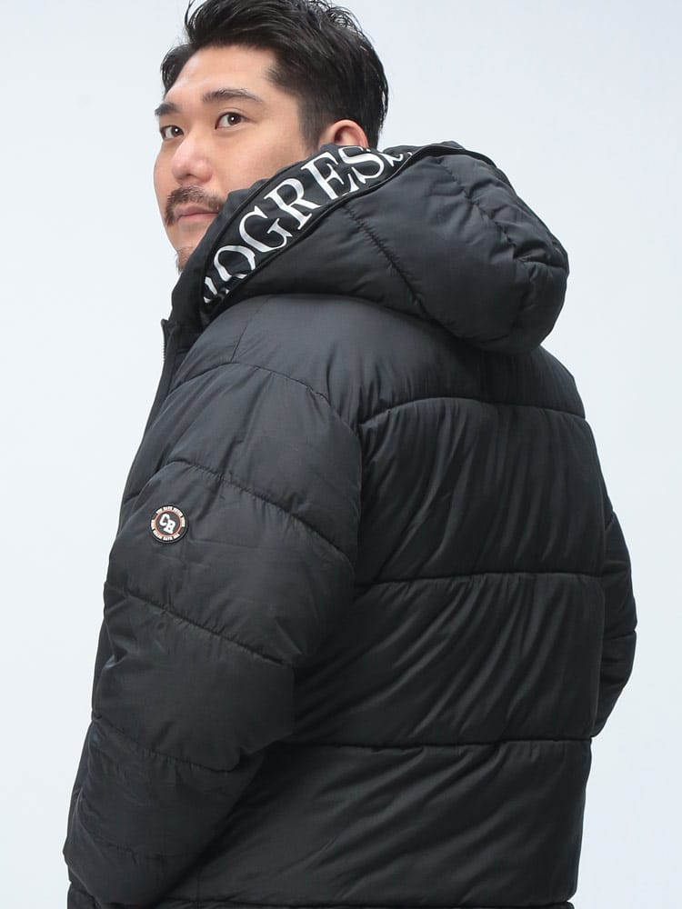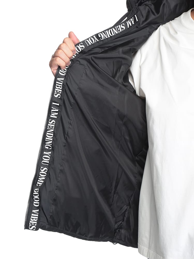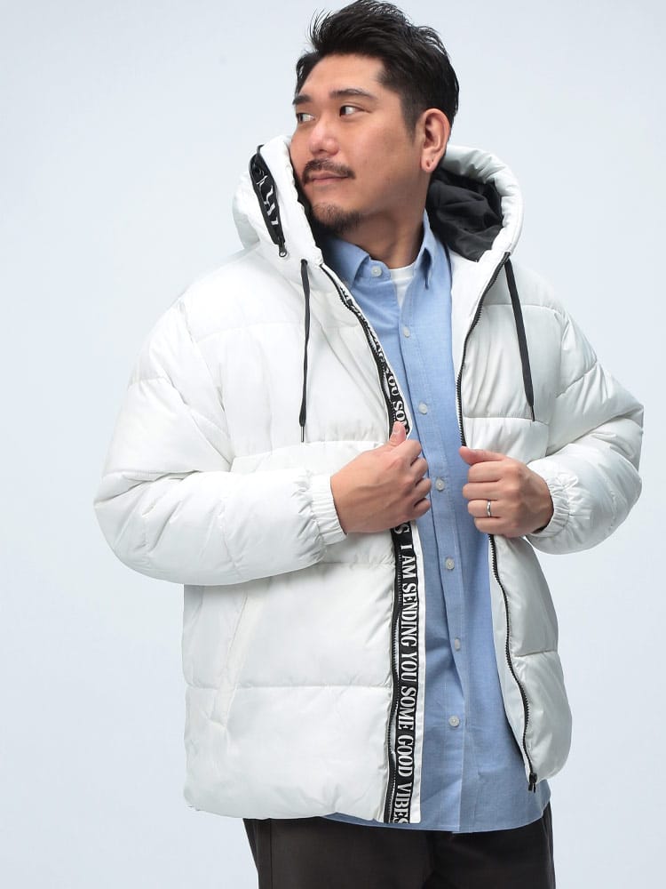 フードのジップを開けるとロゴテープが出てくる仕様になっており、2WAYでお洒落が楽しめます。