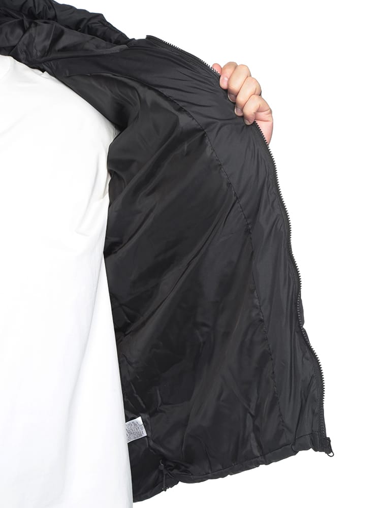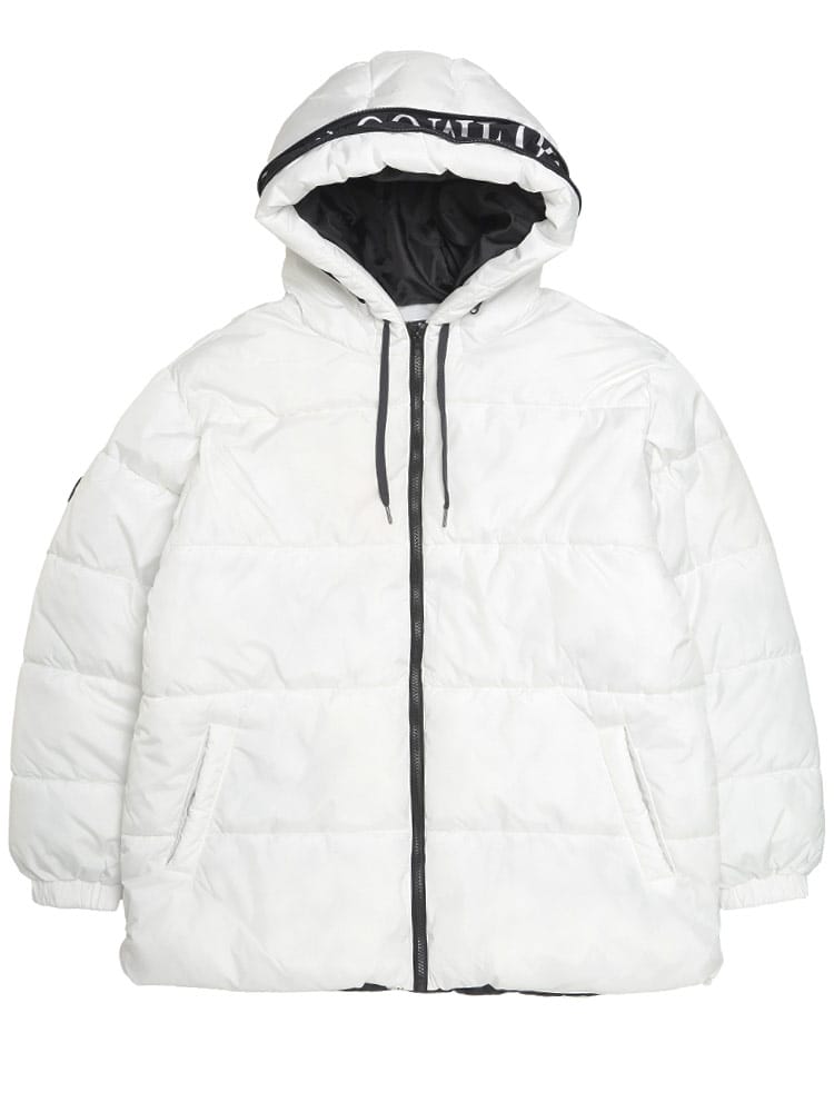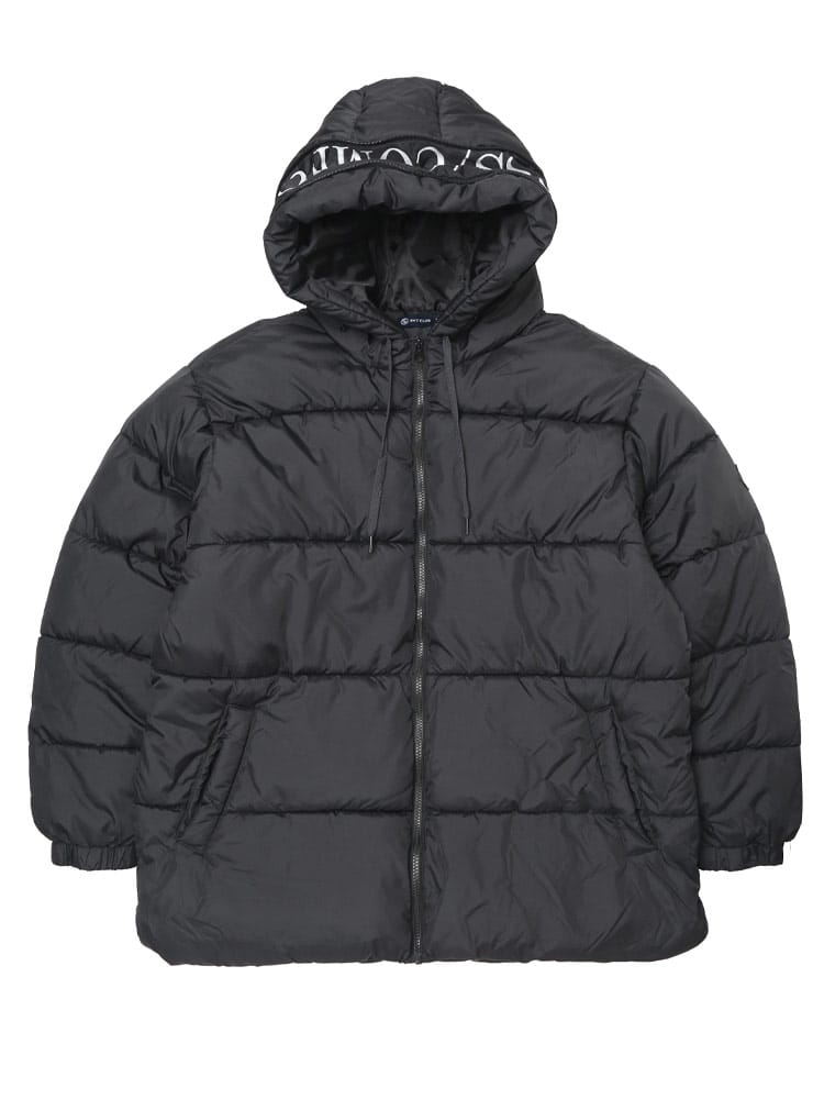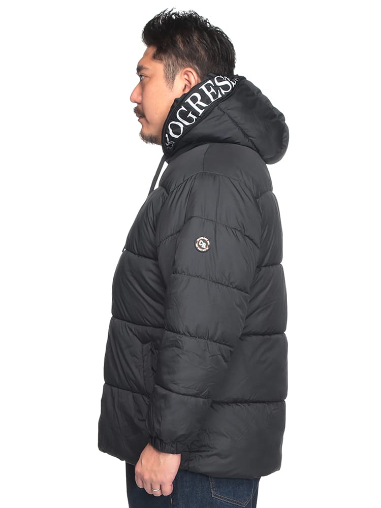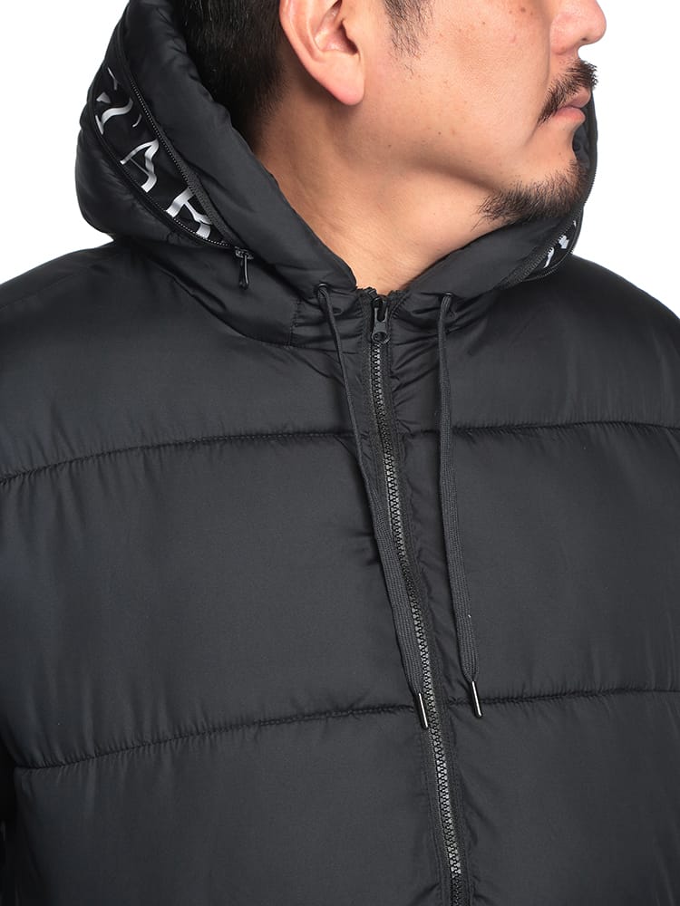 フードのジップを開けるとロゴテープが出てくる仕様になっており、2WAYでお洒落が楽しめます。