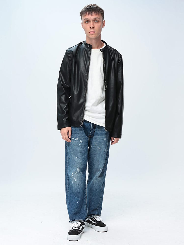 クールなスタイルを叶える合成皮革 シングル フルジップ ジャケットが登場。洗練されたシングルライダースデザインは、無駄を削ぎ落としたミニマルな表情が魅力。リアルレザーのような風合いを持つ合成皮革を採用し、軽やかな着心地とお手入れのしやすさを両立しました。フルジップ仕様でサッと羽織れ、季節の変わり目のアウターとして最適。胸元やサイドに配置された外側ポケット2つが、デザインのアクセントと実用性を兼ね備えます。Tシャツやニットの上に合わせるだけで、男らしい引き締まったスタイルが完成。秋から冬にかけて、大人のカジュアルスタイルを格上げする一着です。