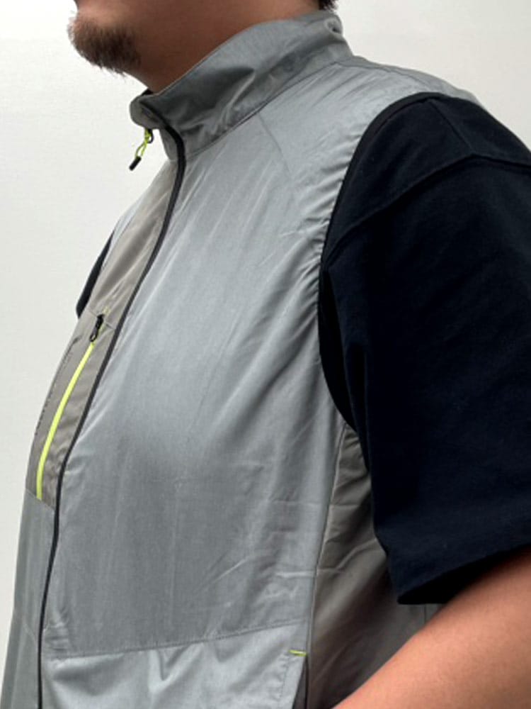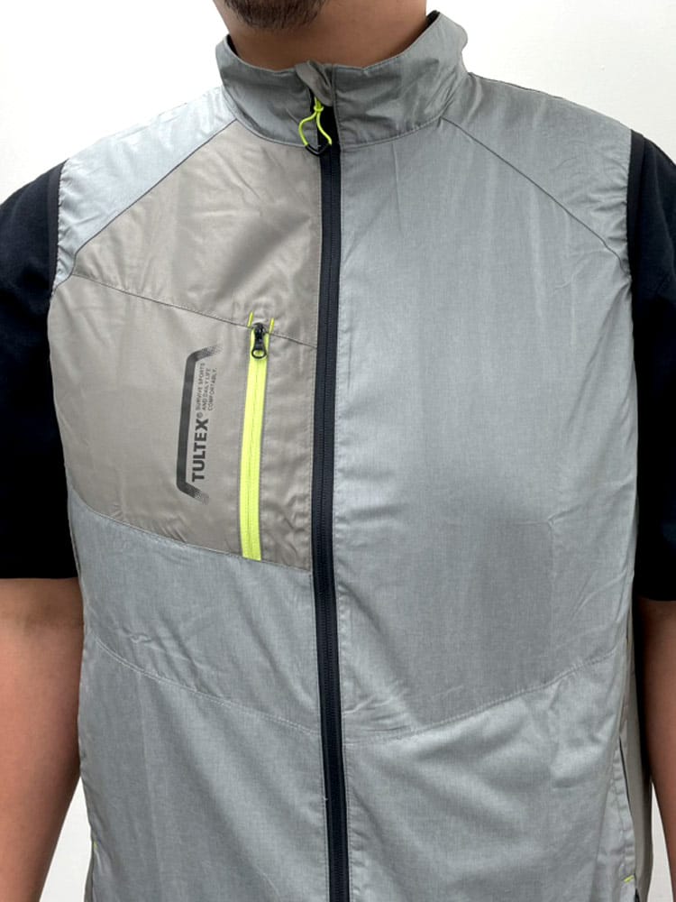 長時間、高出力のファンとバッテリーを完備したアイトス(AITOZ)空調服ベスト。ファスナーはプラスチック製で滑らかな開閉が可能。ポケットファスナー、チンガードなどを完備し機能性も抜群です。立衿タイプなので、シーンに合わせた着こなしを楽しめます。裏生地はメッシュ素材で快適な着心地をキープしてくれます。反射材使用しているので安全性もばっちり!保冷剤ポケットがあり、ファンの風と合わせて清涼感をプラスしてくれます。ファン、バッテリー付き。ファン取り外し可能。
