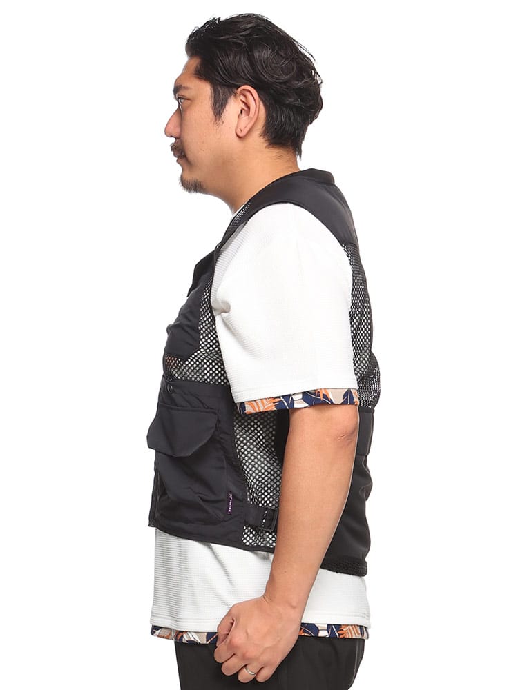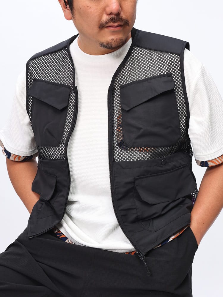 メッシュ素材を採用しており、通気性が非常に高いため、暑い季節のアウトドア活動に最適です。多数の収納ポケットが装備されているため、様々な小物を整理して持ち運べます。軽量で動きやすく、タウンユースにも適しているため、日常のあらゆるシーンで役立ちます。調節可能なストラップにより、体型に合わせてカスタマイズ可能です。シンプルなデザインでありながら機能性を追求した一着は、アクティブなライフスタイルに欠かせないアイテムです。