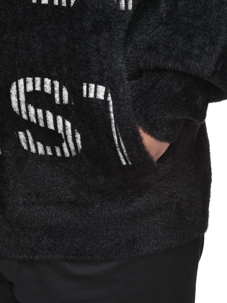 ふわふわのシャギー素材が心地よく、肌触りの良いニットカーディガンです。モヘアのような風合いが上品な印象を与え、モノトーンカラーで大人っぽくスタイリングできます。ウォッシャブル対応なのでお手入れが簡単なのも嬉しいポイント。外側ポケットが2つ付いて機能性も抜群。リブ仕様で保温性も高く、秋冬シーズンに活躍間違いなしの一枚です。ナイロン、アクリル、ポリエステル、モダールの混紡素材で、耐久性と柔らかさを両立。3L/4L/5Lのビッグサイズ展開で、ゆとりのある着心地を実現。