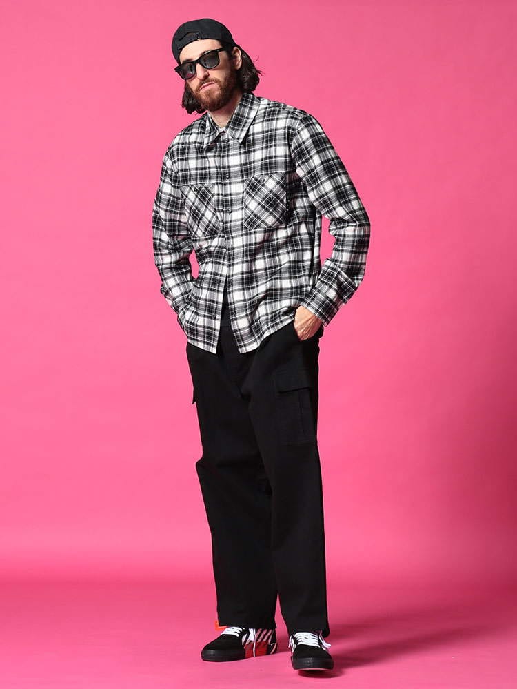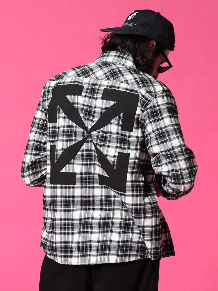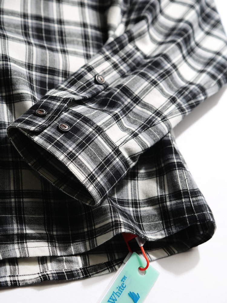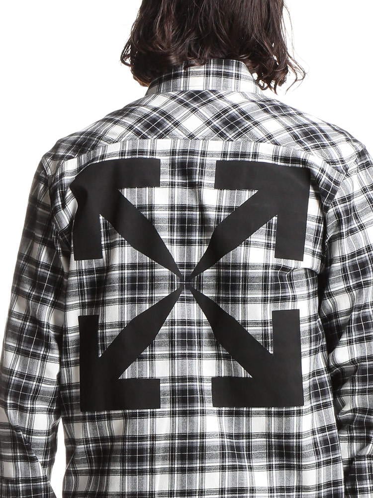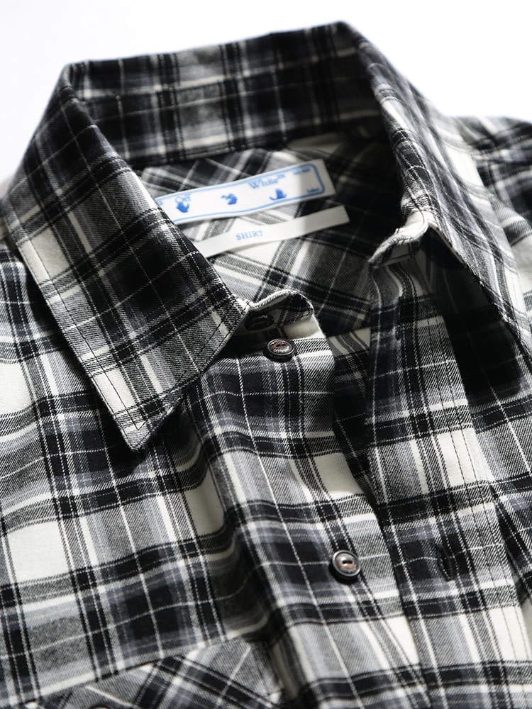 ・チェック柄にバックプリントをあしらったポケット 長袖 シャツ