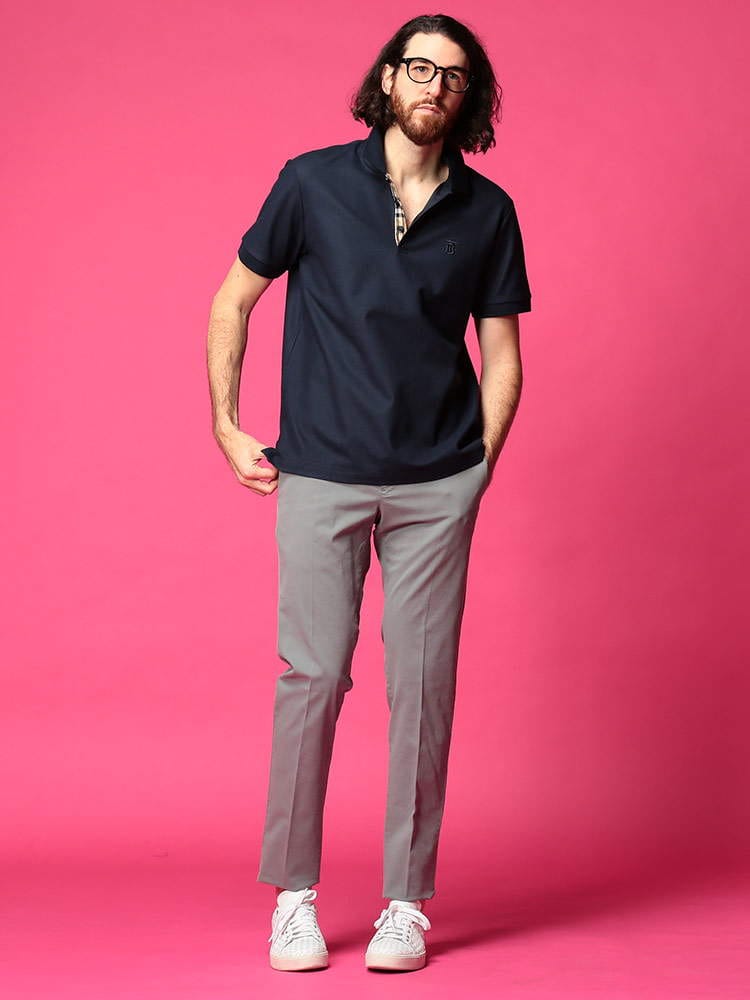 BURBERRY (バーバリー) モノグラムモチーフ コットンピケ 半袖 ポロシャツ EDDIE NAVY BB8014004