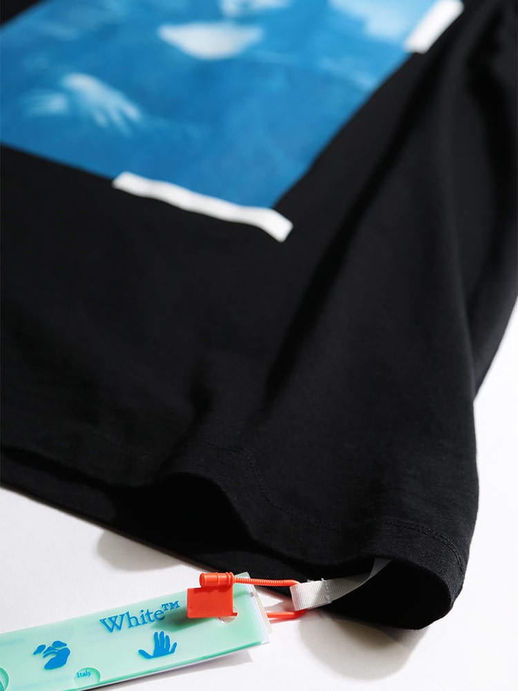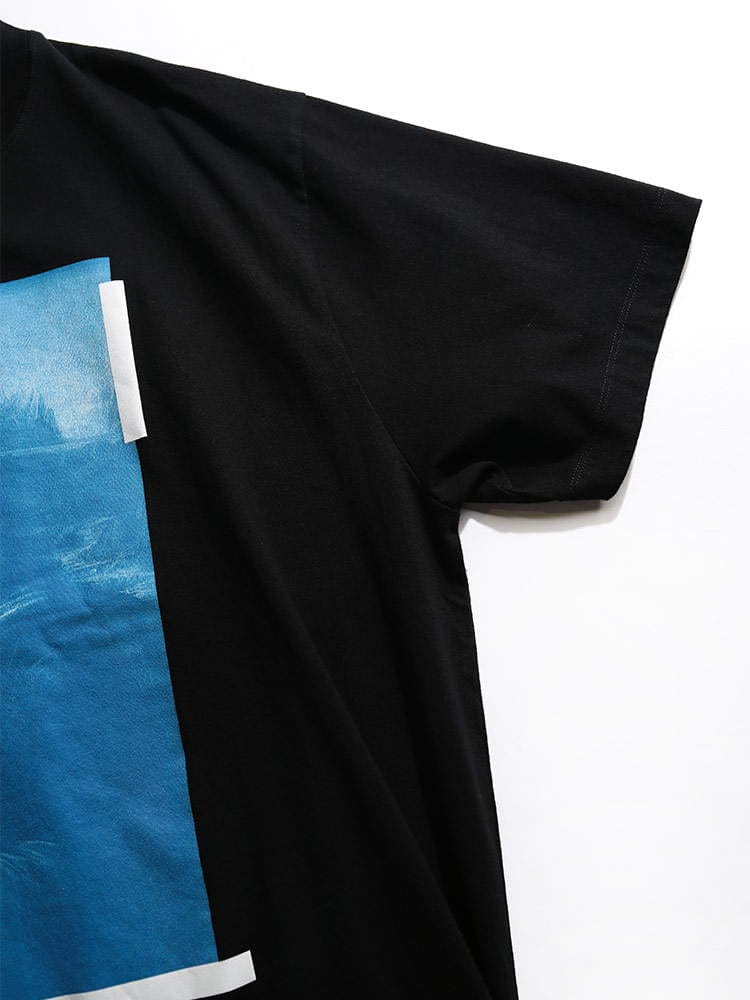 ・フロントのブループリントとバックのロゴが目を引くクルーネック 半袖 Tシャツ BLUE MONALISA OVER
