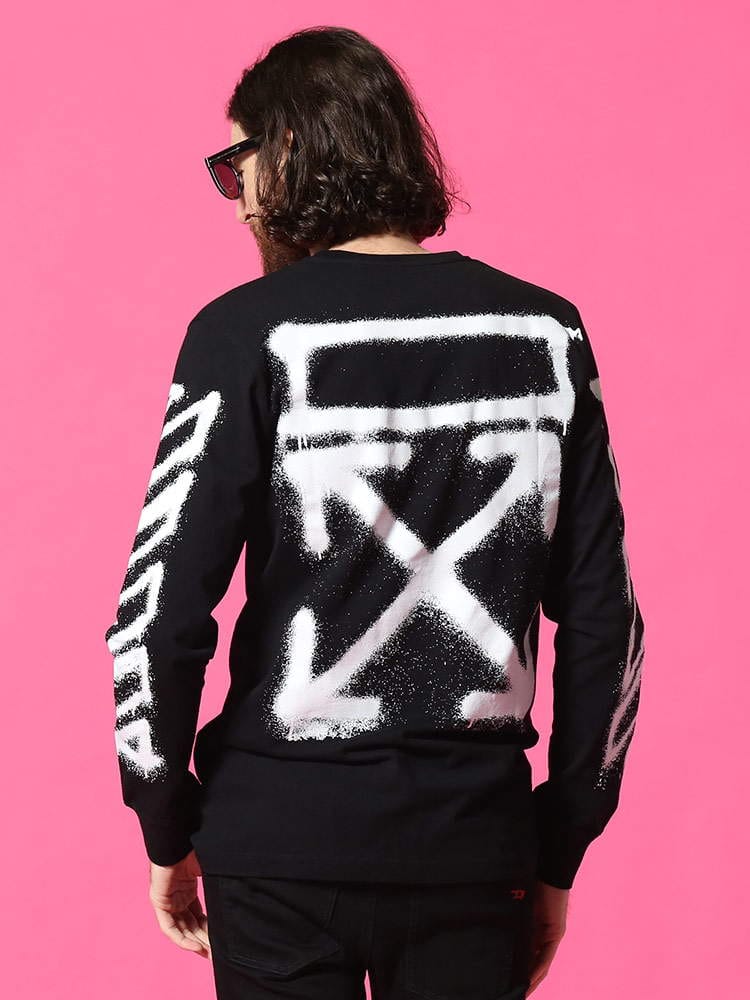 OFF-WHITE (オフホワイト) アーム バックプリント クルーネック 長袖 Tシャツ SPRAY MARKER OWAB01S21JER005