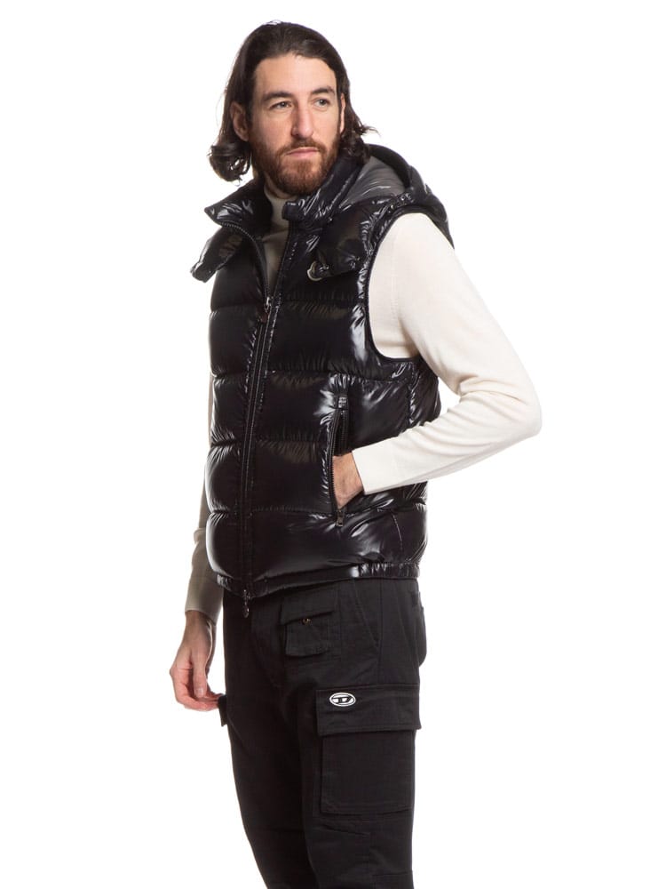 ・光ボーダーキルティングステッチのダウンジレ