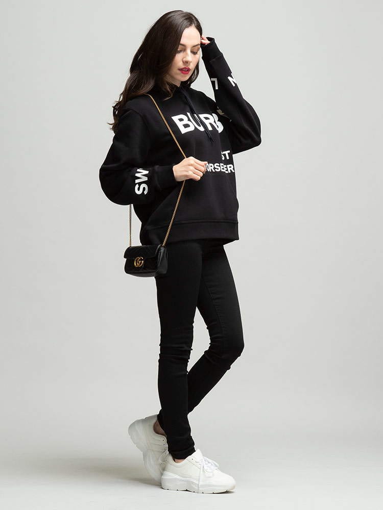 バーバリーから大人気シリーズ、プリントが印象的なレディースパーカーが入荷!太字で強調されたプリントはバーバリー本社住所が記載されてます。身幅が広めのオーバーサイズなのでゆったりと萌え袖に着れてかわいい!ピッタリ着たいならワンサイズ下げてくださいね!パンツにはもちろん、スウェットやスカートにも合わせやすく、オンオフ兼用で使えます!幅広い年齢層の方に支持されたアイテムですので、是非チェックしてくださいね!今回オは大きいサイズのLサイズまで用意しました★